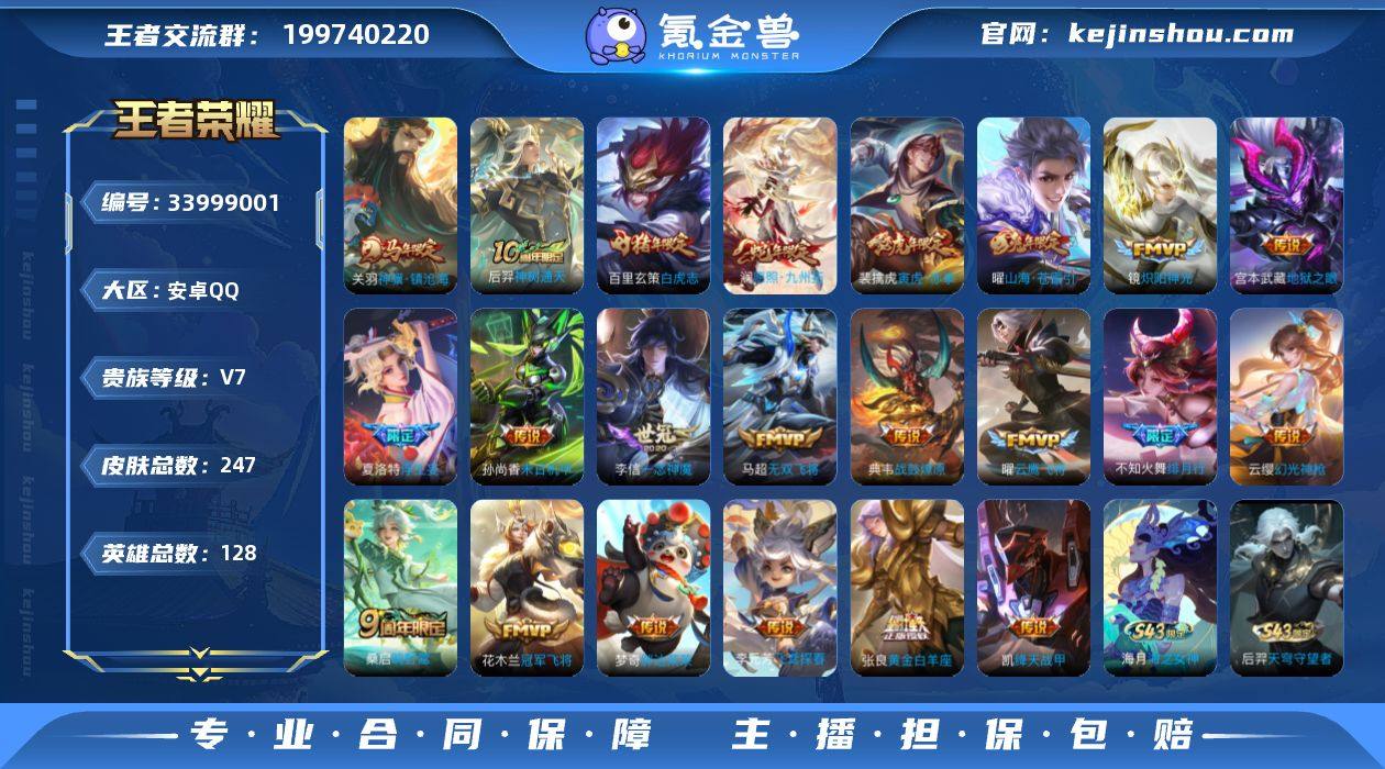 安卓Q-V7-最强王者段位-128英雄-247皮肤-22传说-71史诗 【英雄全皮】:孙权全皮,敖隐全皮,影全皮 【传说皮肤】:关羽神骥镇沧海,后羿神树通天,澜愿照九州拓,云缨幻光神枪,桑启鸣野蒿,典韦战鼓燎原,夏洛特浮生妄,曜山海苍雷引,不知火舞绯月行,马超无双飞将,裴擒虎寅虎赤拳,李元芳飞鸢探春,铠绛天战甲,镜炽阳神光,曜云鹰飞将,李信一念神魔,张良黄金白羊座,百里玄策白虎志,花木兰冠军飞将,梦奇胖达荣荣,孙尚香末日机甲,宫本武藏地狱之眼 【限定皮肤】:姜子牙天穹之誓,狄仁杰阴阳师,赵云皇家上将,赵云百木心枪,墨子神迹守卫,庄周高山流水,高渐离玩趣恶龙,钟无艳超时空战士,白起夜都怪侠,芈月幻夜卜梦,元歌无心,甄姬落雪兰心,马可波罗山海玄木吟,狄仁杰魔术师,狄仁杰万华元夜,达摩沙漠行僧,项羽海滩派对,老夫子航海奇遇记,程咬金演武夺筹,王昭君午后时光,兰陵王金庭之子,不知火舞绯月行,李元芳云中旅人,钟馗驱傩正仪,干将莫邪胡桃夹子,雅典娜黎明之约,鬼谷子五谷丰年,黄忠火炮绅士,苏烈千军破阵,百里玄策白虎志,梦奇顽趣,公孙离玉兔公主,沈梦溪大漠名商,明世隐吟游魔法,裴擒虎寅虎赤拳,裴擒虎擒涛扼浪,狂铁电玩高手,...