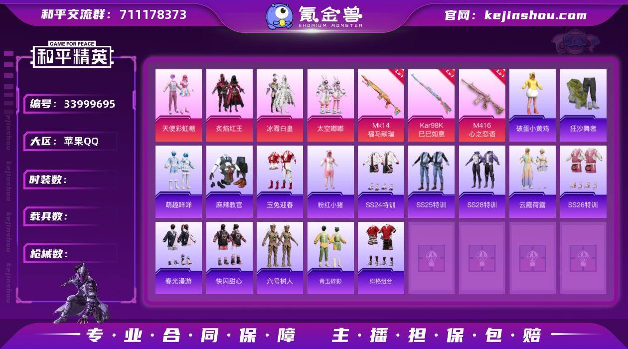 WJ947+【满级心之恋语 天使彩虹糖 兔子头 小熊背包 4粉装3特效】苹果手Q-4粉装-3特效枪-69套装-69枪皮-3王牌印记-不朽星钻Ⅴ-23771热力值【4粉装】天使彩虹糖,冰霜白皇,太空嘟嘟,炙焰红王【3特效枪】Kar98K-巳巳如意[2级],M416-心之恋语[7级],Mk14-福马献瑞[5级]【1稀有】狂沙舞者【1飞行器】太空嘟嘟飞行器【3头盔】童趣迷兔头盔,甜心宝贝头盔,幻影战神头盔【2背包】萌熊伴侣背包,甜心宝贝背包【130其它衣服和枪皮】麻辣教官,蓝色运动,蓝彩潮人,SS28特训,幻世战舞者,SS26特训,青玉碎影,耀眼新星,SS22特训,SS31特训,黄色运动,甜蜜告白,极地朋克,SS25特训,特训学院,黑色伏地魔,玩偶服-卖崽青蛙,轻风白浪,音速流光,疯狂小兔子,SS23特训,牛气冲天,SS20特训,牛气满满,马上有钱,猎鹰,魅力单车,战术大师,SS37特训,迅捷龙虾,白色伏地魔,角色-皓月伶影,冷焰舞者,快闪甜心,竞技名士,SS36特训,SS24特训,幻影武者,角色-军刀雅典娜,云霞荷露,破蛋小黄鸡,SS21特训,田园牧歌,海岛探路者,长空猛禽,猛禽,六号树人,SS19特训,福马献瑞,娇憨猪猪,春光漫游,粉红小猪,飞驰魅影,萌趣咩咩,绯格组合,狙击之神,绮丽涂鸦,街头潮人,玉兔迎春,冰川格斗者,探宝勇士,红色运动,湖蓝色名流,黄色名流,UMP45-涂山...