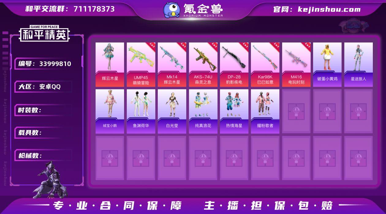 WJ949+【可二次 地铁满天赋 1粉装7特效】安卓手Q-1粉装-7特效枪-26套装-62枪皮-1王牌印记-不朽星钻Ⅴ-15569热力值 【1粉装】角色-辉云木星 【7特效枪】Kar98K-巳巳如意[5级],AKS-74U-森灵之息[4级],UMP45-萌骑冒险[4级],M416-电玩时刻[5级],Mk14-福马献瑞[5级],Mk14-辉云木星[4级],DP-28-豹影疾电[5级] 【2飞行器】炫彩糖果飞行器,马上有福飞行器 【80其它衣服和枪皮】耀粉歌者,龙的传人,SS37特训,萌鸡速递,狙击之神,星途旅人,SS35特训,角色-霜纹水星,红釉青花,鱼渊荷华,街头潮人,角色-白光莹,小财神当家,SS33特训,绒宝小鹅,破蛋小黄鸡,雨过天青,福马献瑞,SS34特训,角色-瑰石海星,老实芭蕉,战术大师,热情海星,纯真浪花,马上有钱,GROZA-海盐豹豹,SKS-炫彩节奏,平底锅-纯真浪花,汤姆逊-纯真浪花,汤姆逊-天降萌叽,20-H-狂鲨锋刃,PKM-雨过天青,Mini14-鸡智如我,电击枪-辉云木星,QBZ-纯真浪花,JS9-辉云木星,破片手榴弹-拽到爆炸,AUG-异域银装,VSS-香桃花海,燃烧瓶-福马献瑞,蜜獾-天降萌叽,SCAR-L-玉兔迎春,GROZA-福马献瑞,AWM-天降萌叽,蝎式手枪-燕燕于飞,DP-28-彩虹符号,蜜獾-精灵梦叶罗丽,Famas-霓彩脉冲,沙漠之鹰-雨过天青,Mini14-耀粉歌者,AKS-74U-鸡智如我,AA12-G-纯真浪花,S12...