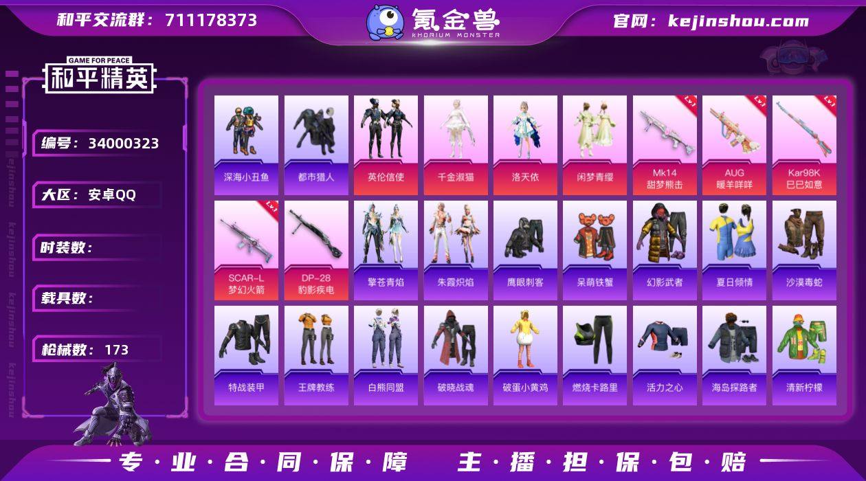 套装/枪械8/装备237/战备136/王牌印记10/热力值50354/七级SCAR-L-梦幻火箭/五级AUG-暖羊咩咩/四级UMP45-萌骑冒险/五级AKS-74U-森灵之息/五级Kar98K-巳巳如意/五级Mk14-甜梦熊击/五级Mk14-福马献瑞/五级DP-28-豹影疾电/浪漫天命/都市猎人/深海小丑鱼/小丑鱼/龟仙人/洛天依/闲梦青缨/英伦信使/千金淑猫/SCAR-L-梦幻火箭/AUG-暖羊咩咩/UMP45-萌骑冒险/AKS-74U-森灵之息/Kar98K-巳巳如意/14-甜梦熊击/Mk14-福马献瑞/DP-28-豹影疾电/炫彩糖果飞行器/智趣喵喵飞行器/幻影战神降落伞/梦幻火箭降落伞/星之彼岸降落伞/洛神天依降落伞/炫光之旅降落伞/守护天翼降落伞/忍者神龟降落伞/幽焰骑士降落伞/千金淑猫降落伞/星穹咏叹调降落伞/智趣喵喵降落伞/绯穹魔姬降落伞/炫彩糖果降落伞/绒宝小鹅/巳巳如意/套装-雪国风尚/套装-炫彩糖果/角色-幸运青/角色-X/角色-阿虎/套装-马上有钱/套装-迅捷龙虾/多纳泰罗/火种守卫者/糖糖葫芦/青团波波/棉花软糖/燕燕于飞/鱼渊荷华/粉恋花/紫幽梦/蓝冰羽/角色-瑰梦爱神/彩虹兔/云朵鹅/雪绒豹/混沌火种/灵公主/朱霞炽焰/套装-凌霄紫焰/擎苍青焰/玩偶服-懒羊羊/套装-书海巡游/套装-画境星梦/套装-琴音绮想/套装-雨过天青/套装-红釉青花/AUG-冰晶雪宝/AKM-破...