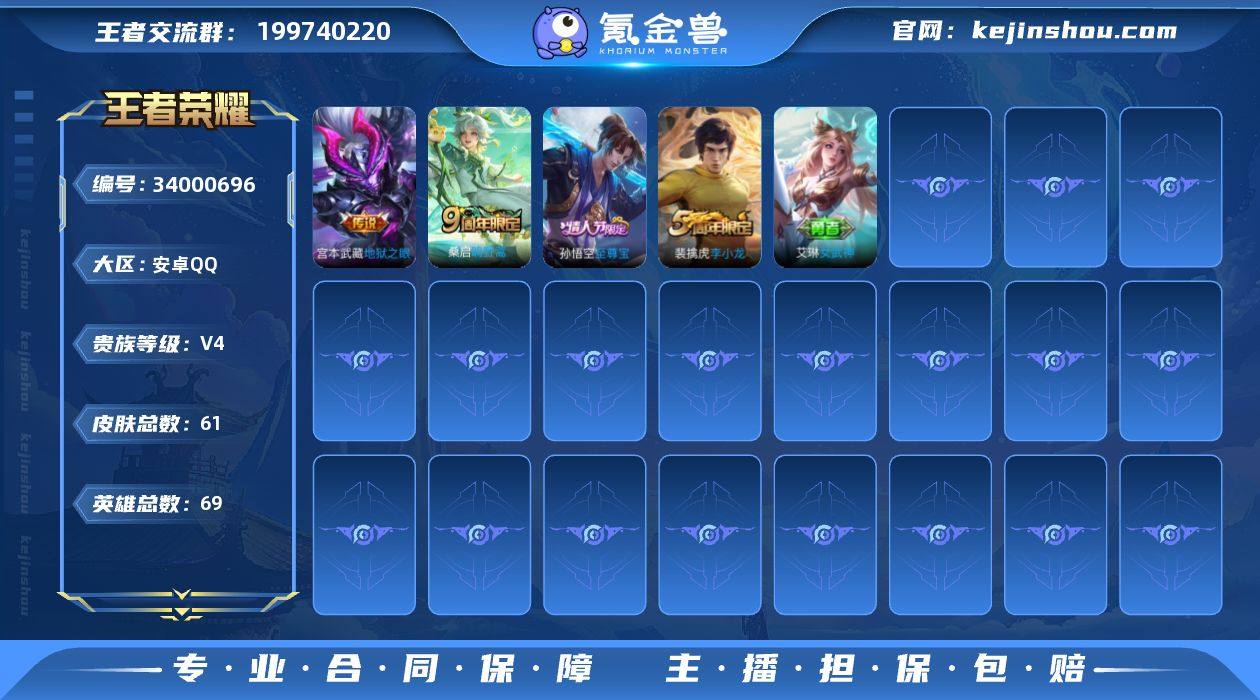 安卓Q 可二次 2传说69英雄61皮肤 鸣野蒿 地狱之眼 涂山容容 至尊宝 黄忠百相守梦 灵蛊蚀心 李小龙 特工魅影 女武神 逐浪之夏 魅语 紫霞仙子 圣诞恋歌 幽灵船长 乘风破浪 末日机甲男 街头霸王 摇滚巨星 鬼剑武藏 克喵 拳王 魅力维加斯 水果甜心 无心 鹰眼统帅 王者荣耀账号