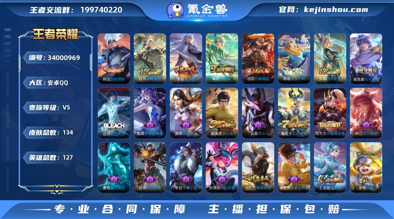 J-DN3928 安卓QQ V5 134皮 1典藏3传说48限定 2按键 全能选手 155幸运值 353英雄碎片 140皮肤碎片 营地号:462970235【荣耀典藏】弑枪猎影,【热门限定】凤求凰,万灵启世, 【限定传说】梁祝,未来纪元,黄金分割率,千年之狐,末日机甲男,原初探秘者,暗隐猎兽者,水晶猎龙者,特工魅影,紫霞仙子,心灵骇客,幽灵船长,节奏热浪,绅士熊喵,暗夜贵公子,偶像歌手,街头霸王,缤纷独角兽,鬼剑武藏,德古拉伯爵,花好人间,穷奇,御狮,御霄,御銮,朔风刀,混沌棋,疑决卦,醍醐杖,万华元夜,女仆咖啡,霸王丸,敏锐之力,
