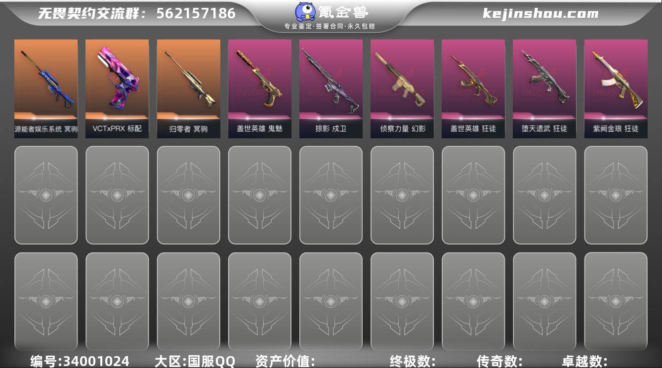 【英雄】:幻棱,炼狱,维斯,暮蝶,钛狐,壹决,铁臂,捷风,雷兹,幽影,不死鸟,贤者,猎枭,蝰蛇,零,芮娜,奇乐,尚勃勒,霓虹,斯凯,夜露,星礈,K/O,海神,盖可,黑梦,钢锁 【近战武器】:近战武器-剥皮小刀,近战武器-流星兵团 短剑,近战武器-金琅斧,近战武器-沙尘幻旅 匕首 【狂徒】:狂徒-塑水宗,狂徒-堕天遗武,狂徒-盖世英雄,狂徒-紫阙金琅,狂徒-流星兵团,狂徒-沙尘幻旅 【幻影】:幻影-侦察力量,幻影-珍珠棘贝 【戍卫】:戍卫-掠影,戍卫-珍珠棘贝,戍卫-萌彩剪影,戍卫-战术熊与伙伴们 【獠犬】:獠犬-复古浪潮,獠犬-胡桃狂想 【冥驹】:冥驹-归零者,冥驹-源能者娱乐系统,冥驹-复古浪潮,冥驹-胡桃狂想 【飞将】:飞将-沙尘幻旅,飞将-战术熊与伙伴们 【莽侠】:莽侠-深海水族,莽侠-纤云弄巧 【战神】:战神-萌彩剪影,战神-深海水族 【奥丁】:奥丁-流星兵团 【判官】:判官-萌彩剪影 【雄鹿】:雄鹿-复古浪潮 【骇灵】:骇灵-流星兵团,骇灵-沙尘幻旅,骇灵-珍珠棘贝 【蜂刺】:蜂刺-胡桃狂想,蜂刺-深海水族,蜂刺-纤云弄巧 【标配】:标配-超能偶像,标配-战术熊与伙伴们 【VCT手枪】:标配-VCT x PRX 【正义】:正义-奇点,正义-沙尘幻旅,...