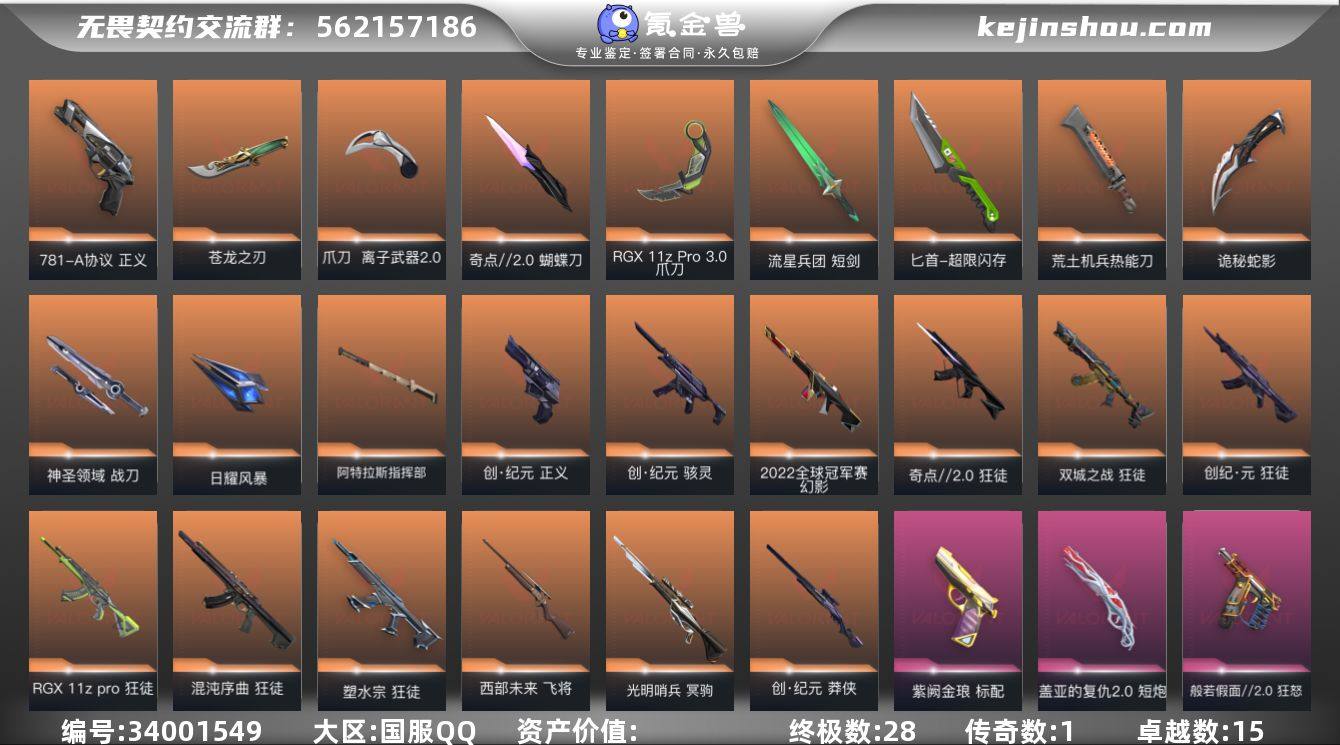 【kywwqy25】【套装】:创·纪元套装,般若假面//2.0套装 【英雄】:幻棱,炼狱,维斯,暮蝶,钛狐,壹决,铁臂,捷风,雷兹,幽影,不死鸟,贤者,猎枭,蝰蛇,零,芮娜,奇乐,尚勃勒,霓虹,斯凯,夜露,星礈,K/O,海神,盖可,黑梦,钢锁 【近战武器】:近战武器-5周年//公测重制版 苍龙之刃,近战武器-奇点//2.0 蝴蝶刀,近战武器-紫金爪刀,近战武器-RGX 11z Pro//3.0 爪刀,近战武器-黑波之刃,近战武器-镭切,近战武器-鬼丸国纲,近战武器-离子武器//2.0 爪刀,近战武器-未来开拓者,近战武器-流星兵团 短剑,近战武器-超限闪存 匕首,近战武器-荒土机兵 热能刀,近战武器-诡秘蛇影 军刀,近战武器-神圣领域 战刀,近战武器-日耀风暴 遗器,近战武器-阿特拉斯指挥部 甩棍 【狂徒】:狂徒-混沌序曲,狂徒-奇点//2.0,狂徒-双城之战,狂徒-塑水宗,狂徒-创·纪元,狂徒-RGX 11z Pro,狂徒-般若假面//2.0,狂徒-盖亚的复仇,狂徒-日冕雄师,狂徒-紫阙金琅,狂徒-离子武器//2.0,狂徒-荒土机兵,狂徒-流星兵团,狂徒-诡秘蛇影 【幻影】:幻影-2022全球冠军赛,幻影-侦察力量,幻影-超限闪存,幻影-神圣领域,幻影-纳米打击,幻影-末日之翼 【戍卫】:戍卫-海洋之星,戍卫-...