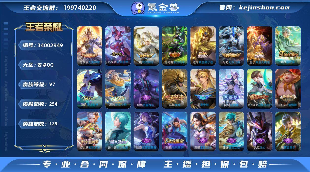 0BG3SE可二次v7"""249皮肤水晶1传说6优质限定4 钱包已注销、信用分正常、无设备脸 水晶皮肤:九霄神辉, 传说皮肤:黄金天蝎座,末日机甲-孙尚香,黄金狮子座,无双飞将,炽阳神光,鸣野蒿, 史诗限定:神威,时之祈愿-云中君,埋骨钱,山海·玄木吟, 优质史诗皮肤:永昼,赏金猎手,玫瑰异探, 周年皮肤:江河有灵,高山流水,五谷丰年, 珍宝阁:妄想食味,蔷薇恋人, 史诗皮肤:王者之锤,星夜王子,圣诞狂欢,末日机甲-吕布,无心,幽灵船长,水晶猎龙者,心灵战警,猫狗日记-孙策,节奏热浪,鬼剑武藏,紫霞仙子,暗隐猎兽者,冰冠公主,黎明之约,原初追逐者,热力回旋,纤云弄巧,缤纷独角兽,金属风暴,魅力维加斯,摇滚巨星,冰雪圆舞曲,心灵骇客,拒霜思,水果甜心,鹰眼统帅,特工魅影,无限星赏官,箭羽风息,绅士熊喵,天才门将,乱世虎臣, "" " 贵族7 荣耀典藏1 星传说1 传说皮肤6 史诗皮肤65 皮肤数量249 皮肤价值:172980 英雄129 永恒钻石III 总场次7258