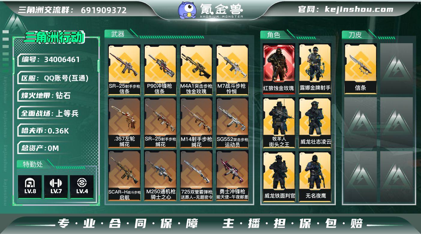 实名: 不可修改 烽火地带段位: 钻石 全面战场段位: 上等兵 总资产: 94 哈夫币: 367 干员外观: 威龙-铁面判官(S1),红狼-蚀金玫瑰,牧羊人-街头之王(S2),威龙-壮志凌云(S3),无名-夜鹰(S4),蜂医-送葬人·无题密令(S5),露娜-金牌射手(S7) 传说武器皮肤: QBZ95-1突击步枪-破军,M4A1突击步枪-蚀金玫瑰,M7战斗步枪-怜悯,M7战斗步枪-维京,SCAR-H战斗步枪-铁艺苍穹,SR-25射手步枪-水墨云图,AS Val突击步枪-蛇年祥瑞,AK-12突击步枪-夜鹰,SMG45冲锋枪-骑士,725双管霰弹枪-送葬人-无题密令,M4A1突击步枪-阿米娅,CAR-15突击步枪-阿米娅,复合弓-黑-天际线,AWM狙击步枪-捞点薯条,腾龙突击步枪-捞点薯条,93R-捞点薯条,勇士冲锋枪-能天使-午夜邮差,M250通用机枪-骑士之心,M7战斗步枪-棱镜攻势S2(典藏),SCAR-H战斗步枪-启航,近战-信条,P90冲锋枪-信条,SR-25射手步枪-信条,SG552突击步枪-运动员,M14射手步枪-蛮荒,.357左轮-缄花,SR-25射手步枪-缄花,M14射手步枪-缄花