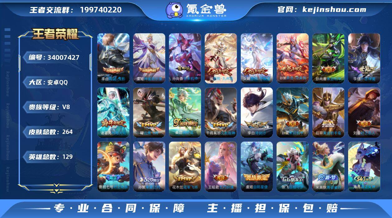 【编号67618,可秒换绑】【店长推荐!极品带妹号!虞姬典藏,李白典藏,澜愿照·九州拓,孙策乘龙·淬吴钩,鲁班七号时之奇旅,李白诗剑行,诸葛亮时雨天司,李信一念神魔!!】,安卓Q-V8-永恒钻石IV段位-129英雄-264皮肤-2典藏皮肤-19传说-81史诗 【英雄全皮】:敖隐全皮,海诺全皮 【荣耀典藏】:李白鸣剑曳影,虞姬神鉴启示录 【传说皮肤】:女娲愿照千秋盛,澜愿照九州拓,桑启鸣野蒿,孙策乘龙淬吴钩,鲁班七号时之奇旅,张飞百相守梦,李白诗剑行,孙策挚爱之约,孙策末日机甲,王昭君乞巧织情,诸葛亮时雨天司,虞姬启明星使,曜云鹰飞将,李信一念神魔,刘备时之恋人,干将莫邪久胜战神,花木兰冠军飞将,后羿黄金射手座,孙尚香末日机甲 【限定皮肤】:大乔绒语心约,姜子牙天穹之誓,狄仁杰阴阳师,赵云皇家上将,鲁班七号狮舞东方,鲁班七号时之奇旅,扁鹊奇幻香踪,马可波罗山海玄木吟,狄仁杰魔术师,项羽海滩派对,韩信飞衡,孙悟空至尊宝,孙悟空孙行者,张飞百相守梦,李元芳匿光侦查者,李元芳云中旅人,虞姬启明星使,杨戬潮玩骑兵,女娲朔望之晖,蔡文姬繁星吟游,鬼谷子五谷丰年,诸葛亮时雨天司,裴擒虎擒涛扼浪,瑶山海碧波行,云中君纤云弄巧,孙策挚爱...