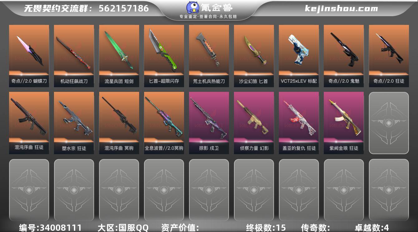 【套装】:奇点//2.0套装 【英雄】:幻棱,炼狱,维斯,暮蝶,钛狐,壹决,铁臂,捷风,雷兹,幽影,不死鸟,贤者,猎枭,蝰蛇,零,芮娜,奇乐,尚勃勒,霓虹,斯凯,夜露,星礈,K/O,海神,盖可,黑梦,钢锁 【近战武器】:近战武器-奇点//2.0 蝴蝶刀,近战武器-紫金爪刀,近战武器-威龙之刃,近战武器-流星兵团 短剑,近战武器-超限闪存 匕首,近战武器-荒土机兵 热能刀,近战武器-机动狂飙 战刀,近战武器-沙尘幻旅 匕首 【狂徒】:狂徒-混沌序曲,狂徒-奇点//2.0,狂徒-塑水宗,狂徒-盖亚的复仇,狂徒-紫阙金琅,狂徒-荒土机兵,狂徒-流星兵团,狂徒-沙尘幻旅 【幻影】:幻影-侦察力量,幻影-超限闪存,幻影-纳米打击 【戍卫】:戍卫-掠影,戍卫-浮光跃金,戍卫-萌彩剪影,戍卫-逆冲蛮牛,戍卫-战术熊与伙伴们 【獠犬】:獠犬-胡桃狂想,獠犬-模拟赫兹,獠犬-逆冲蛮牛 【冥驹】:冥驹-混沌序曲,冥驹-全息波普//2.0,冥驹-荒土机兵,冥驹-胡桃狂想,冥驹-模拟赫兹 【飞将】:飞将-沙尘幻旅,飞将-战术熊与伙伴们 【莽侠】:莽侠-超限闪存,莽侠-纤云弄巧 【战神】:战神-浮光跃金,战神-萌彩剪影 【奥丁】:奥丁-流星兵团,奥丁-纳米打击 【判官】:判官-萌彩剪影,判官...