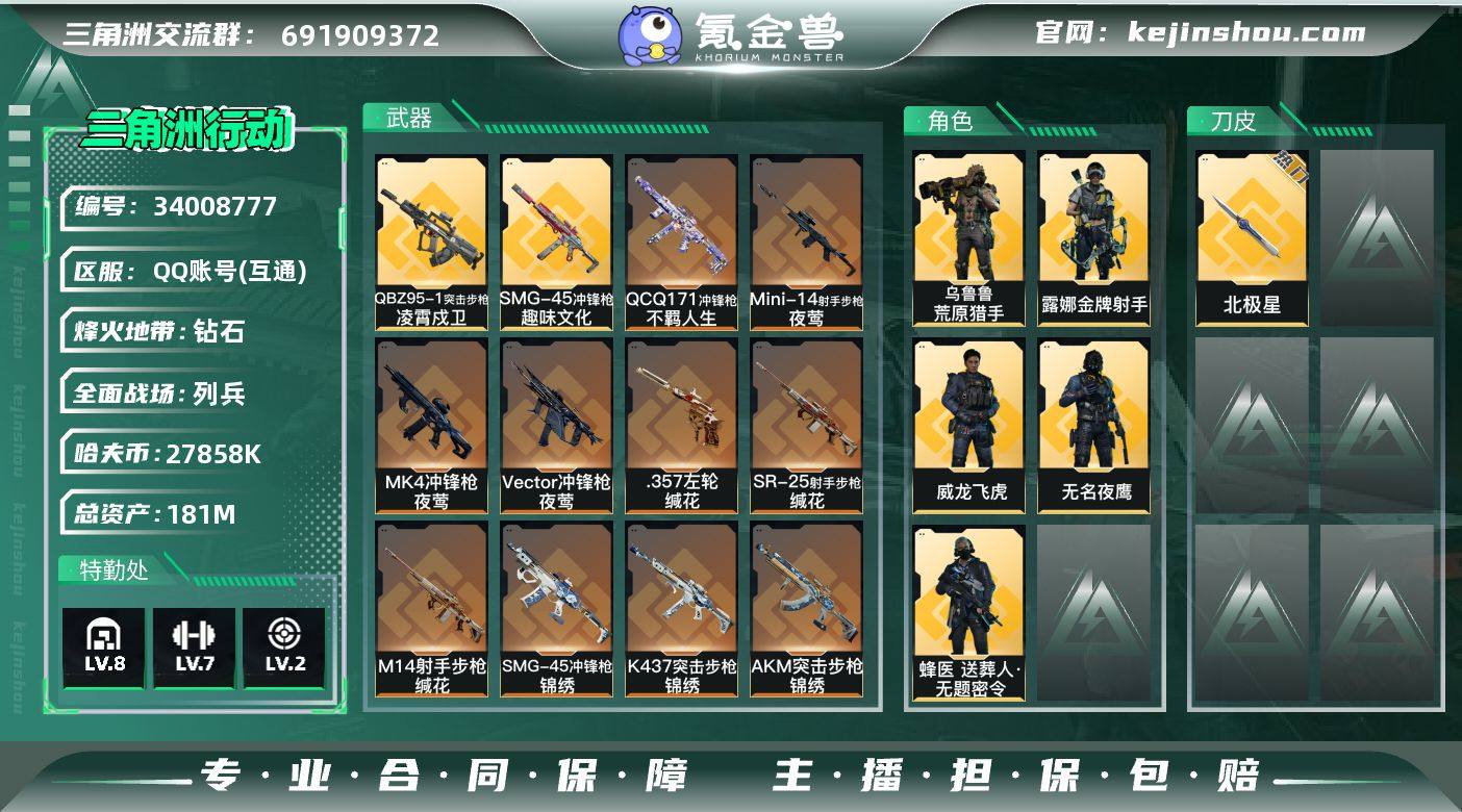 【sjz7649】总资产:181.4M, 哈夫币:27858K ;总资产181M/哈夫币2785万/战场等级26/行动等级60/安全箱等时效性道具以游戏内数据为准,详情请看图 威龙-飞虎,蜂医-送葬人·无题密令,无名-夜鹰,露娜-金牌射手,乌鲁鲁-荒原猎手,近战-北极星,近战-黑鹰,M4A1突击步枪-阿米娅,AKM突击步枪-锦绣,QBZ95-1突击步枪-凌霄戍卫,K416突击步枪-行动记录,M16A4突击步枪-狩猎时刻,SG552突击步枪-运动员,AK-12突击步枪-夜鹰,SCAR-H战斗步枪-启航,G3战斗步枪-狩猎时刻,CAR-15突击步枪-黑鹰坠落,K437突击步枪-锦绣,Vector冲锋枪-狩猎时刻,Vector冲锋枪-夜莺,SMG-45冲锋枪-趣味文化,SMG-45冲锋枪-锦绣,勇士冲锋枪-能天使-午夜邮差,QCQ171冲锋枪-不羁人生,MK4冲锋枪-夜莺,725双管霰弹枪-送葬人-无题密令,Mini-14射手步枪-夜莺,M14射手步枪-蛮荒,M14射手步枪-缄花,SKS射手步枪-骑士,SR-25射手步枪-缄花,.357左轮-缄花,复合弓-黑·天际线,ASh-12战斗步枪-碎冰行动,AKM突击步枪-林中猎手,QBZ95-1突击步枪-曙光,ASh-12战斗步枪-守夜人,K416突击步枪-冬日风情,K416突击步枪-腊梅,K416突击步枪-阿萨拉特攻,AUG突击步枪-蝮蛇,AUG突击步枪-紧急戒备,M7战斗步枪-百步穿杨,SG552突击步枪-尖端治疗,SG552突击步枪...