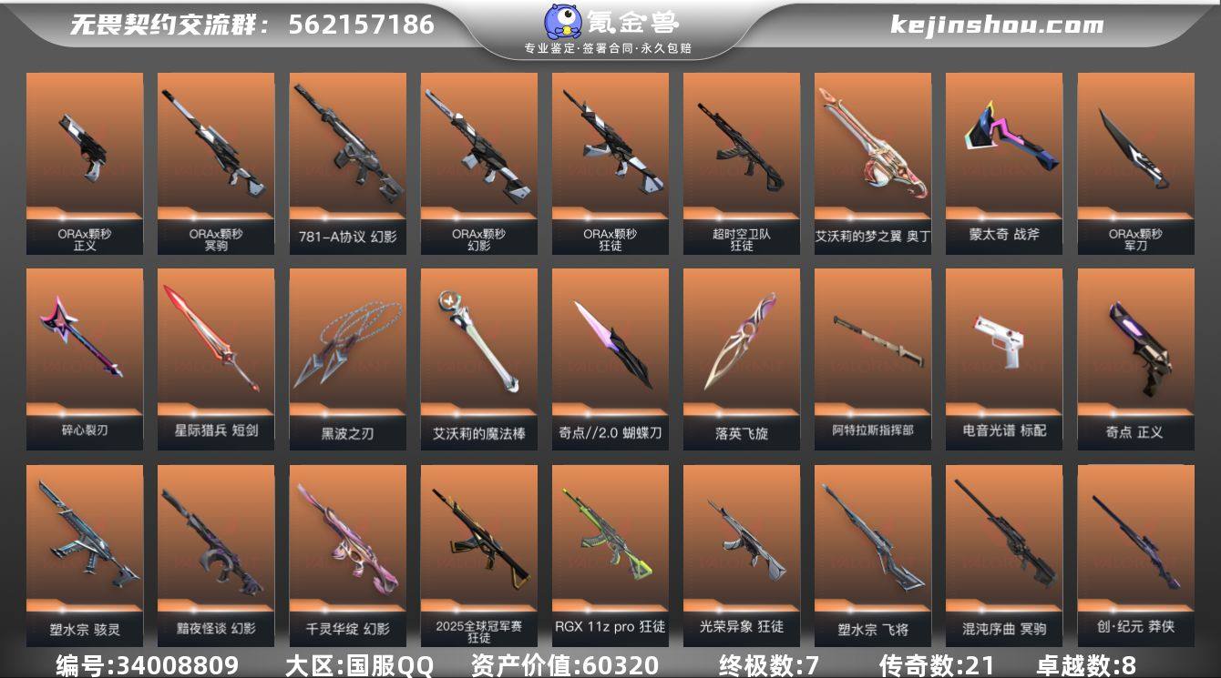 段位: 铂金 套装: ORAx颗秒 近战武器皮肤: 黑波之刃-塑水宗,落英飞旋-千灵华绽,艾沃莉的魔法棒,蝴蝶刀-奇点//2.0,阿特拉斯指挥部,星际猎兵 短剑,碎心裂刃,ORAx颗秒 军刀,蒙太奇 战斧 步枪皮肤: 狂徒-紫阙金琅,狂徒-盖亚的复仇,幻影-侦察力量,幻影-781-A协议,狂徒-耀鳞威龙,狂徒-堕天遗武,幻影-千灵华绽,狂徒-日冕雄师,幻影-黯夜怪谈,狂徒-RGX 11z pro,狂徒-光荣异象,狂徒-超时空卫队,2025全球冠军赛 狂徒,幻影-ORAx颗秒,狂徒-ORAx颗秒,超集系统 狂徒,蒙太奇 幻影,风暴之子 戍卫 佩枪皮肤: 正义-奇点,鬼魅-耀鳞威龙,标配-电音光谱,正义-ORAx颗秒,超集系统 标配,风暴之子 正义,蒙太奇 狂怒 狙击枪皮肤: 飞将-塑水宗,冥驹-堕天遗武,冥驹-混沌序曲,莽侠-创·纪元,冥驹-ORAx颗秒,风暴之子 冥驹,超集系统 飞将 冲锋枪皮肤: 骇灵-塑水宗,蒙太奇 骇灵 霰弹枪皮肤: 风暴之子 雄鹿 机枪皮肤: 奥丁-艾沃莉的梦之翼,蒙太奇 战神 亮点: 【优质装备】:ORAx颗秒,正义-奇点,幻影-781-A协议,幻影-千灵华绽,冥驹-混沌序曲,狂徒-紫阙金琅,狂徒-盖亚的复仇,幻影-侦察力量,冥驹-堕天遗武,狂徒-日冕雄师,幻影-黯夜怪谈,狂徒-RGX 11z pro,奥丁-艾沃莉的梦之翼,黑波之刃,飞将-塑水宗,骇灵-塑水宗,狂徒-...