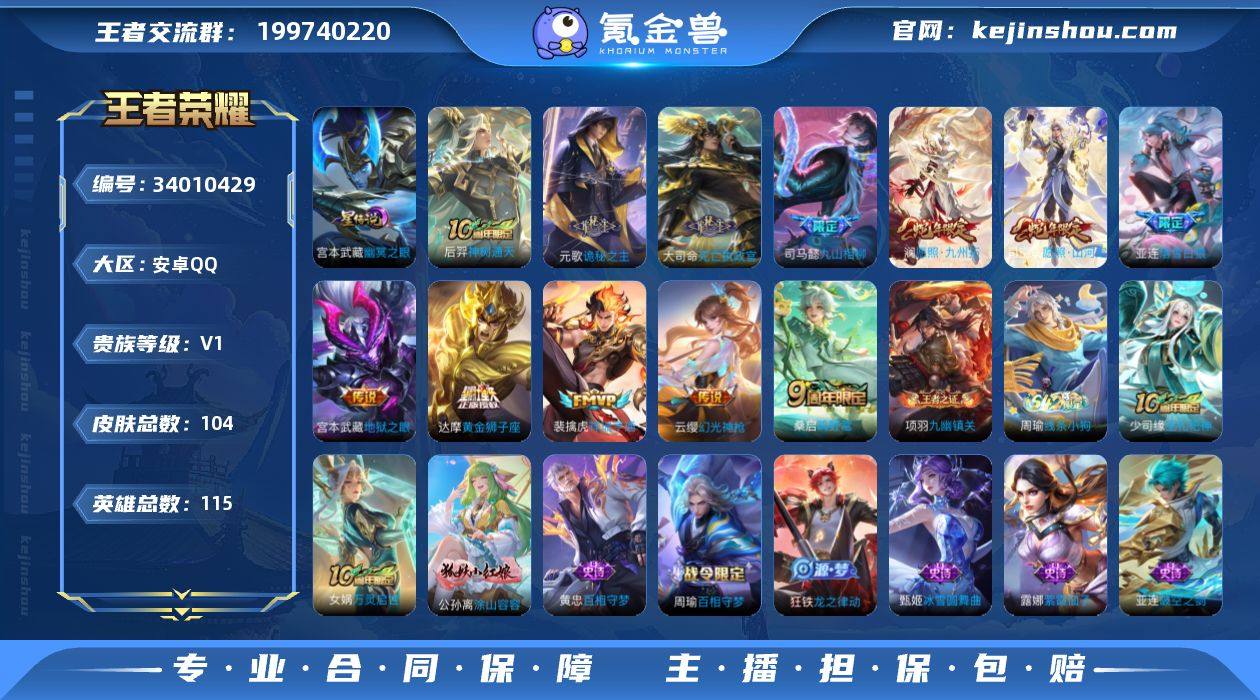 安卓Q-V1-永恒钻石V段位-115英雄-104皮肤-12传说-27史诗【英雄全皮】:孙权全皮,空空儿全皮【传说皮肤】:后羿神树通天,元歌诡秘之主,大司命死亡执政官,司马懿九山相柳,司空震愿照山河定,澜愿照九州拓,云缨幻光神枪,裴擒虎祥瑞亨通,桑启鸣野蒿,亚连落雪白狼,达摩黄金狮子座,宫本武藏地狱之眼【限定皮肤】:蔡文姬夏日便利店,大乔绒语心约,虞姬夏日便利店,姜子牙天穹之誓,狄仁杰阴阳师,赵云皇家上将,狄仁杰魔术师,项羽海滩派对,百里玄策原初追逐者,裴擒虎擒涛扼浪,鲁班大师探海日志,张良古海寻踪,亚连落雪白狼,周瑜熔金海岸【年限皮肤】:司空震愿照山河定,澜愿照九州拓【赛季限定】:裴擒虎擒涛扼浪,鲁班大师探海日志,张良古海寻踪,姜子牙天穹之誓,东皇太一噬灭天穹,太乙真人谧流熔炉,甄姬逆浪荇歌,亚瑟荣光之誓,百里玄策原初追逐者,项羽九幽镇关【战令限定】:蔡文姬夏日便利店,虞姬夏日便利店,亚连破空之剑,孙悟空神迹守卫,周瑜百相守梦,孙策百相守梦,周瑜线条小狗【史诗皮肤】:周瑜线条小狗,项羽九幽镇关,少司缘巫礼祀神,女娲万灵启世,公孙离涂山容容,黄忠百相守梦,周瑜百相守梦,狂铁龙之律动,亚连破空之剑,蔡文姬夏日...