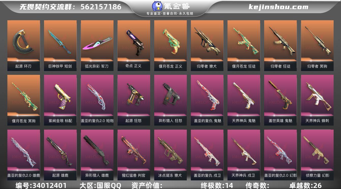 【套装】:起源套装,盖亚的复仇//2.0套装,天界神兵套装,异形猎人套装,盖世英雄套装,巨神铁甲套装 【英雄】:幻棱,炼狱,维斯,暮蝶,钛狐,壹决,铁臂,捷风,雷兹,幽影,不死鸟,贤者,猎枭,蝰蛇,零,芮娜,奇乐,尚勃勒,霓虹,斯凯,夜露,星礈,K/O,海神,盖可,黑梦,钢锁 【近战武器】:近战武器-剥皮小刀,近战武器-巨神铁甲 短剑,近战武器-定海神珍,近战武器-盖亚之愠,近战武器-弧光异彩 军刀,近战武器-起源 环刃,近战武器-天玄刀 【狂徒】:狂徒-归零者,狂徒-偃月苍龙,狂徒-盖世英雄,狂徒-起源,狂徒-弧光异彩,狂徒-巨神铁甲 【幻影】:幻影-盖亚的复仇//2.0,幻影-异形猎人,幻影-侦察力量,幻影-巨神铁甲,幻影-噬源兽防卫工程 【戍卫】:戍卫-盖亚的复仇,戍卫-天界神兵,戍卫-彩梦之城,戍卫-萌彩剪影 【獠犬】:獠犬-归零者,獠犬-冰点凝冻,獠犬-弧光异彩,獠犬-胡桃狂想 【冥驹】:冥驹-归零者,冥驹-偃月苍龙,冥驹-盖世英雄,冥驹-起源,冥驹-胡桃狂想 【飞将】:飞将-天界神兵,飞将-沙尘幻旅,飞将-信手涂鸦 【战神】:战神-盖世英雄,战神-盖亚的复仇//2.0,战神-萌彩剪影 【奥丁】:奥丁-异形猎人,奥丁-巨神铁甲,奥丁-信手涂鸦 【...