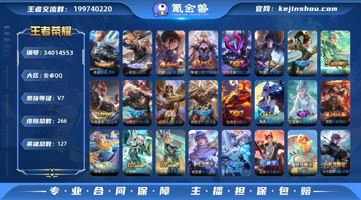 无二次-安卓Q-V7-最强王者段位-127英雄-266皮肤-1典藏皮肤-1无双-11传说-67史诗HZ2642806 【英雄全皮】:孙权全皮,李信全皮 【荣耀典藏】:李白鸣剑曳影 【无双皮肤】:李信问心剑 【传说皮肤】:云缨神骥越千峰,桑启鸣野蒿,孙悟空齐天大圣,李信山海炽霜斩,女娲补天,孙悟空零号赤焰,李信一念神魔,干将莫邪久胜战神,后羿黄金射手座,宫本武藏地狱之眼,孙悟空地狱火 【限定皮肤】:狄仁杰阴阳师,赵云皇家上将,墨子神迹守卫,孙尚香蔷薇恋人,庄周高山流水,阿轲迷踪丽影,扁鹊奇幻香踪,芈月重明,芈月幻夜卜梦,周瑜赤莲之焰,元歌云间偶戏,元歌无心,夏侯惇朔风刀,典韦穷奇,马可波罗暗影游猎,狄仁杰魔术师,狄仁杰万华元夜,达摩星际陆战队,达摩沙漠行僧,项羽海滩派对,老夫子圣诞老人,老夫子醍醐杖,老夫子航海奇遇记,关羽冰锋战神,程咬金演武夺筹,刘邦夺宝奇兵,兰陵王金庭之子,亚瑟潮玩骑士王,孙悟空大圣娶亲,孙悟空零号赤焰,孙悟空齐天大圣,牛魔御旌,后羿圣弓游侠,李元芳云中旅人,钟馗驱傩正仪,杨戬潮玩骑兵,女娲朔望之晖,女娲补天,干将莫邪真爱魔法,雅典娜单词大作战,雅典娜黎明之约,蔡文姬繁星吟游,太乙真人华丽摇滚,鬼谷子原初...