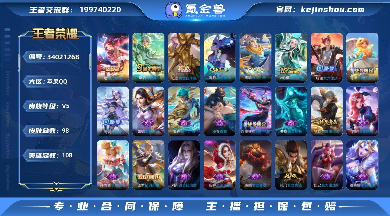 无二次-苹果Q女生号-V5-最强王者段位-107英雄-96皮肤-1典藏皮肤-2传说-21史诗 【英雄全皮】:孙权全皮,敖隐全皮 【荣耀典藏】:瑶拾光映像 【传说皮肤】:桑启鸣野蒿,张良黄金白羊座 【限定皮肤】:姜子牙天穹之誓,狄仁杰阴阳师,赵云皇家上将,项羽海滩派对,沈梦溪龙舞盛年 【赛季限定】:姜子牙天穹之誓,东皇太一噬灭天穹,太乙真人谧流熔炉,钟馗虚灵犬护,甄姬逆浪荇歌,亚瑟荣光之誓 【战令限定】:亚连破空之剑,孙悟空神迹守卫,百里守约百相守梦,老夫子百相守梦,刘禅鸭鸭历险记,沈梦溪鸭鸭历险记,周瑜线条小狗 【史诗皮肤】:海月海之女神,周瑜线条小狗,少司缘巫礼祀神,狂铁龙之律动,刘禅鸭鸭历险记,阿轲化蝶舞,百里守约百相守梦,亚连破空之剑,小乔青蛇,狄仁杰鹰眼统帅,伽罗箭羽风息,阿轲节奏热浪,雅典娜冰冠公主,刘邦德古拉伯爵,张飞乱世虎臣,曹操幽灵船长,妲己魅力维加斯,嬴政摇滚巨星,孙尚香水果甜心,廉颇地狱岩魂,貂蝉圣诞恋歌,赵云皇家上将,露娜紫霞仙子 【其他皮肤】:影百相守梦,蚩奼极光幻客,艾琳鹤鸣心笺,孙权径山谋武,张良罗小黑战记,亚瑟荣光之誓,甄姬逆浪荇歌,雅典娜潮玩士官长,露娜命运加冕,阿古朵布丁狗之约,...