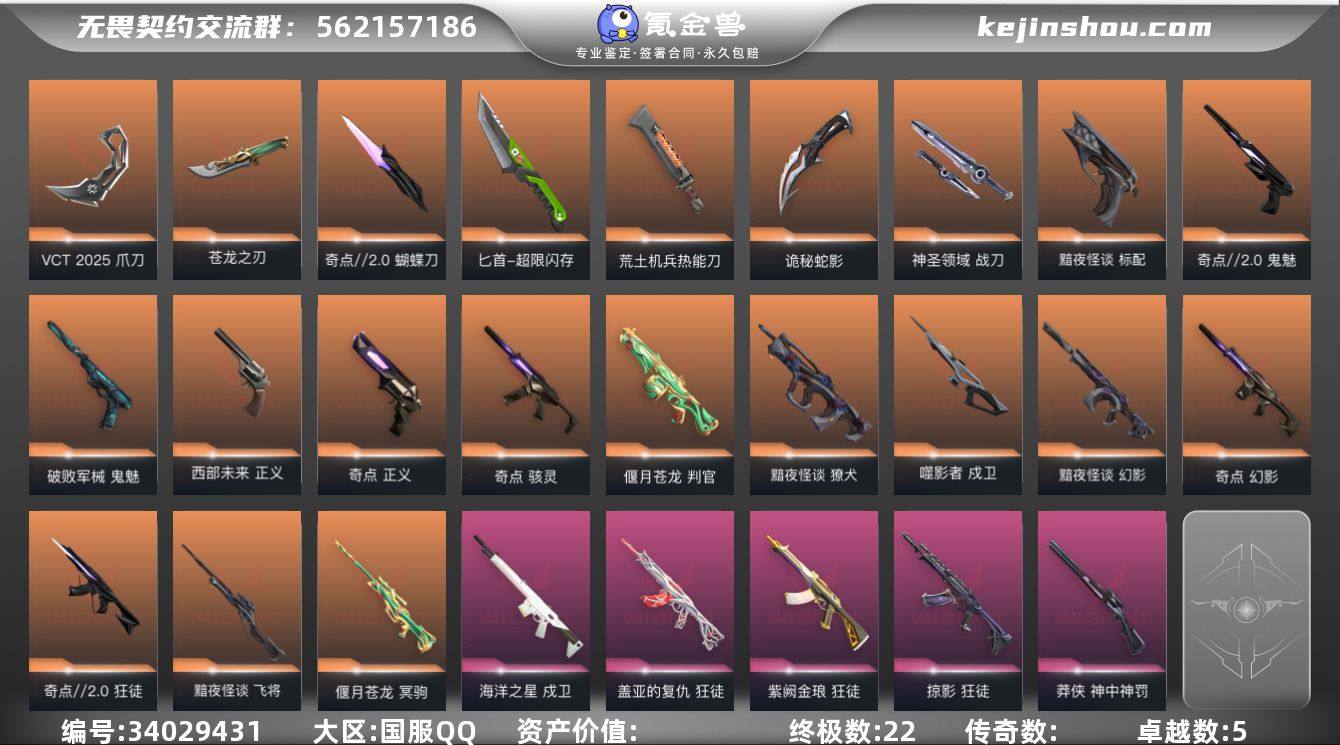 【PTWW4344】LV等级102/皮肤总价值42630/段位未定级/总皮肤数量74/刀皮数量8/枪皮数量66/套装数量4/具体详情请看图/VCT 2025赛季礼包/奇点//2.0套装/黯夜怪谈套装/奇点套装/幻棱/炼狱/维斯/暮蝶/钛狐/壹决/铁臂/捷风/雷兹/幽影/不死鸟/贤者/猎枭/蝰蛇/零/芮娜/奇乐/尚勃勒/霓虹/夜露/K/O/海神/盖可/钢锁/苍龙之刃/蝴蝶刀-奇点//2.0/VCT 2025 爪刀/匕首-超限闪存/荒土机兵热能刀/夜刃诡镰/诡秘蛇影/神圣领域 战刀/狂徒-奇点//2.0/狂徒-掠影/狂徒-盖亚的复仇/狂徒-紫阙金琅/狂徒-荒土机兵/狂徒-诡秘蛇影/幻影-黯夜怪谈/幻影-奇点/幻影-超限闪存/幻影-神圣领域/幻影-纳米打击/幻影-末日之翼/戍卫-噬影者/戍卫-海洋之星/戍卫-浮光跃金/戍卫-逆冲蛮牛/戍卫-月球哨兵/戍卫-折光棱晶/獠犬-黯夜怪谈/獠犬-神圣领域/獠犬-模拟赫兹/獠犬-逆冲蛮牛/冥驹-偃月苍龙/冥驹-荒土机兵/冥驹-模拟赫兹/冥驹-星云暗涌/飞将-黯夜怪谈/飞将-末日之翼/莽侠-神中神罚/莽侠-超限闪存/莽侠-诡秘蛇影/莽侠-月球哨兵/战神-神圣领域/战神-浮光跃金/奥丁-纳米打击/奥丁-末日之翼/判官-偃月苍龙/判官-诡秘蛇影/判官-纳米打击x/雄鹿-模拟赫兹/雄鹿-逆冲蛮牛/雄鹿-月球哨兵/骇灵-奇点/骇灵-荒土机兵/骇灵-浮光跃...