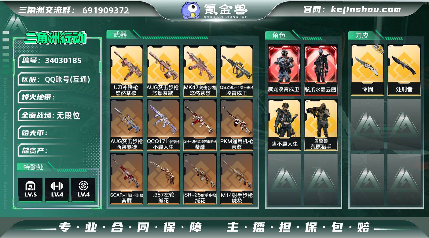 【总资产49.83M 哈弗币79.9万 干员外观5个 烽火60级 钻石】可二次 资产49.8M 怜悯 处刑者 三角券1058 威龙-凌霄戍卫 骇爪-水墨云图 乌鲁鲁-荒原猎手 露娜-金牌射手 蛊-不羁人生 AKM突击步枪-锦绣 QBZ95-1突击步枪-凌霄戍卫 K416突击步枪-行动记录 AUG突击步枪-悠然茶歇 AUG突击步枪-西装暴徒 SG552突击步枪-运动员 SCAR-H战斗步枪-水墨云图 SCAR-H战斗步枪-荼蘼 K437突击步枪-锦绣 MK47突击步枪-悠然茶歇 UZI冲锋枪-悠然茶歇 SMG-45冲锋枪-锦绣 SR-3M紧凑突击步枪-荼蘼 QCQ171冲锋枪-不羁人生 PKM通用机枪-荼蘼 M14射手步枪-蛮荒 M14射手步枪-缄花 SKS射手步枪-骑士 SR-25射手步枪-缄花 357左轮-缄花 10-10b84-4,编号:KXQIQ95