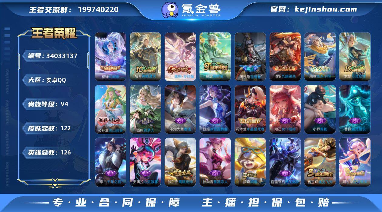 编号A01917可二次(精品小号) V4 122皮肤 1典藏 3传说 幻阙歌 愿照·岁时盈 踏浪烽翎 九幽镇关 鸣野蒿 神树通天 鹤鸣心笺 织梦人 涂山容容 幽灵船长