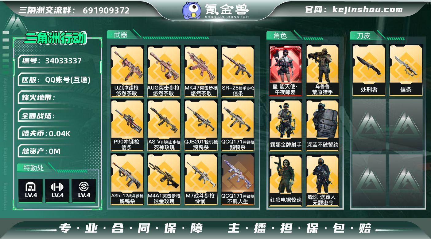265m总资产-49k哈夫币-60烽火等级-黑鹰-31战场等级-上等兵 【干员外观】:蛊-能天使午夜邮差,蜂医-送葬人·无题密令,深蓝-不破誓约,红狼-电锯惊魂,露娜-金牌射手,乌鲁鲁-荒原猎手 【近战皮肤】:近战-信条,近战-处刑者3级,近战-黑鹰 【传说外观】:M4A1突击步枪-蚀金玫瑰,M4A1突击步枪-阿米娅,AKM突击步枪-锦绣,ASh-12战斗步枪-鹅鸭杀,K416突击步枪-行动记录,AUG突击步枪-悠然茶歇,M7战斗步枪-怜悯,SG552突击步枪-运动员,AK-12突击步枪-特斯拉线圈,SCAR-H战斗步枪-启航,G3战斗步枪-骑士,CAR-15突击步枪-阿米娅,AS Val突击步枪-死神玫瑰,腾龙突击步枪-马年祥瑞,K437突击步枪-锦绣,KC17突击步枪-电锯惊魂,MK47突击步枪-悠然茶歇,P90冲锋枪-信条,Vector冲锋枪-能天使-午夜邮差,Vector冲锋枪-夜莺,UZI冲锋枪-特斯拉线圈,UZI冲锋枪-悠然茶歇,SMG-45冲锋枪-锦绣,SR-3M紧凑突击步枪-特斯拉线圈,勇士冲锋枪-能天使-午夜邮差,QCQ171冲锋枪-鹅鸭杀,QCQ171冲锋枪-不羁人生,MK4冲锋枪-夜莺,725双管霰弹枪-送葬人-无题密令,M250通用机枪-骑士之心,QJB201轻机枪-鹅鸭杀,Mini-14射手步枪-夜莺,M14射手步枪-蛮荒,M14射手步枪-缄花,SKS射手步枪-骑士,...