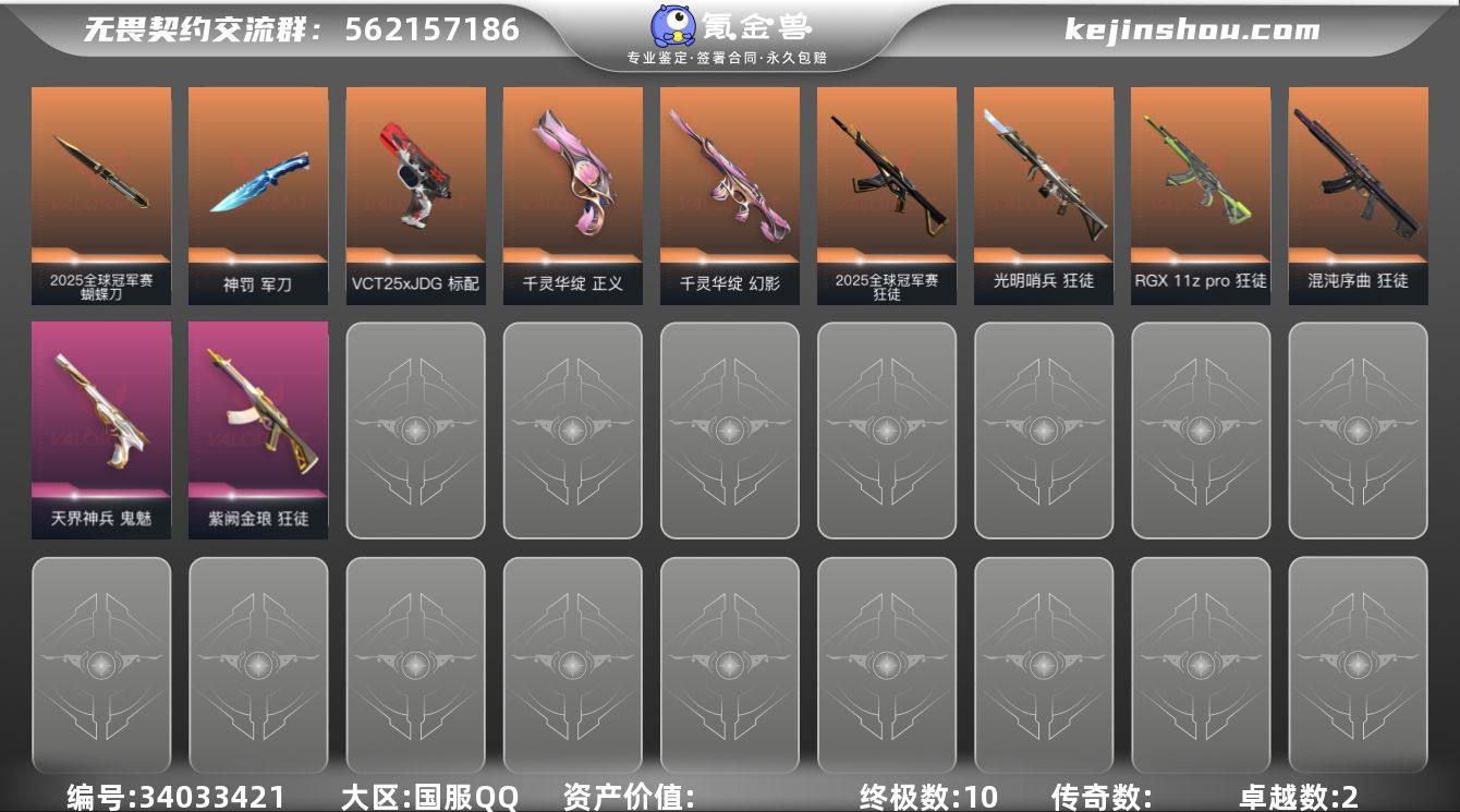 【kywwqy285】【套装】:2025全球冠军赛套装 【英雄】:炼狱,维斯,暮蝶,壹决,铁臂,捷风,雷兹,幽影,不死鸟,贤者,猎枭,零,芮娜,奇乐,斯凯,夜露,K/O,海神,盖可,黑梦 【近战武器】:近战武器-2025全球冠军赛 蝴蝶刀,近战武器-碎心裂刃,近战武器-神罚 军刀 【狂徒】:狂徒-2025全球冠军赛,狂徒-光明哨兵,狂徒-混沌序曲,狂徒-RGX 11z Pro,狂徒-紫阙金琅 【幻影】:幻影-千灵华绽 【VCT手枪】:标配-VCT25 x JDG 【正义】:正义-千灵华绽,正义-纳米打击 【鬼魅】:鬼魅-天界神兵 【卡面】:终章:激斗汉堡 卡面,进入射程 卡面,《双城之战》拥抱 卡面,精灵大战 卡面,欢迎来到底城 卡面,南瓜盛典 卡面,VCT CN首冠 卡面,无畏契约:暮蝶 卡面,修车达人 卡面,热舞环节 卡面,正义的化身 卡面,时间到 卡面,最高舞台 卡面,声感陷阱设计图 卡面,梦幻奶茶 卡面,无畏契约GO!第一卷:芮娜 卡面,无畏契约GO!第一卷:零 卡面,别冒尖 卡面,代号红色 卡面,新兵报到 卡面,V契约 卡面,无畏契约 卡面 【喷漆】:嗨宝南瓜灯 喷漆,嘭! 喷漆,都算到了 喷漆,控场勿近 喷漆,伤心心 喷漆,熊抱 喷漆,蛋糕还是爆能器? 喷漆,超级粉丝 喷漆,捷风差距...