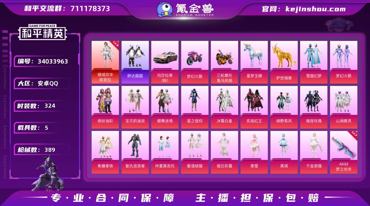 【LHPD987】【精品公主号/三级欧若拉/雪国/新火箭/猪脸/淑猫/星梦AUG】安卓手Q-1神装-19粉装-13特效枪-5载具-9粉色飞行器-135563热力值-26王牌印记-324套装-389枪皮【红色神装等级】:镜域双华-欧若拉(三级)【红色角色神装】:镜域双华-欧若拉【热门品类】:粉装-雪国幻梦,粉装-梦幻火箭,粉装-缤纷油彩,套装-浪漫天命,套装-小丑鱼,角色-军刀雅典娜,套装-胖达圆圆,套装-SS1特训,旭日初心兜帽大衣,套装-龟仙人,套装-潮萌小黄鸭,套装-暗影哥特,套装-浪漫波比,套装-粉红小猪,角色-8号机,角色-Mark.06,熔岩游骑兵连帽夹克【粉色套装】:粉装-宝贝奶油派,粉装-雪国幻梦,粉装-蝶舞迷情,粉装-梦幻火箭,粉装-星之信仰,粉装-缤纷油彩,粉装-冰霜白皇,粉装-炙焰红王,粉装-绿野柔风,粉装-暗夜玫瑰,粉装-山涧鹿灵,粉装-焦糖拿铁,角色-复仇流浪者,粉装-仲夏莫吉托,粉装-蜜语绒猫,角色-烟云彩露,角色-美雪,角色-美琪,角色-千金淑猫【粉色枪皮等级】:AKM-梦之光华(七级),SCAR-L-甜梦小狐(七级),M416-五爪金龙(七级),M416-墨龙九天(三级),AUG-星梦奇缘(三级),M762-苔丝玫瑰(七级),Kar98K-巳巳如意(五级),M24-镜域双华(三级),Mk14-盛世惊鸿(三级),DP...