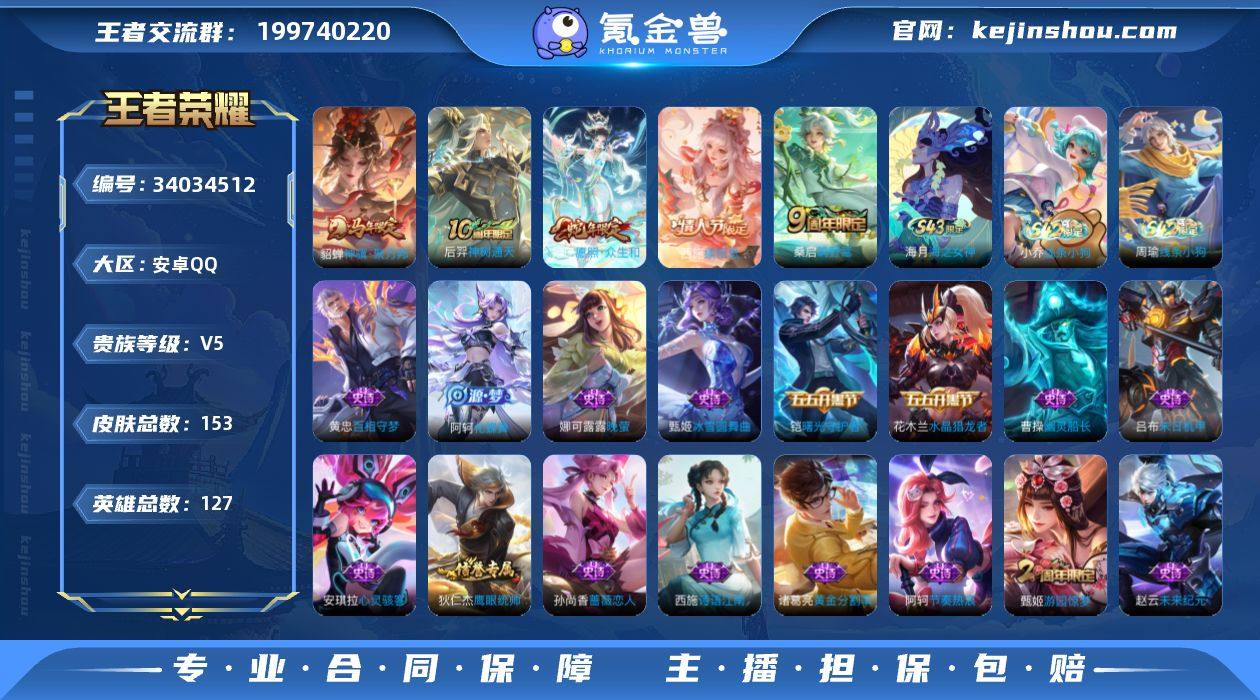 W16452 可立即换绑无需挂单养号 铭文满级 传说5 按键7 夺宝233 安卓Q-V5-永恒钻石I段位-127英雄-153皮肤-5传说-35史诗 【英雄全皮】:孙权全皮,敖隐全皮,空空儿全皮 【传说皮肤】:貂蝉神骥聚万邦,后羿神树通天,西施续相思,妲己愿照众生和,桑启鸣野蒿 【限定皮肤】:蔡文姬夏日便利店,大乔绒语心约,虞姬夏日便利店,姜子牙天穹之誓,狄仁杰阴阳师,赵云皇家上将,孙尚香蔷薇恋人,庄周高山流水,甄姬游园惊梦,达摩沙漠行僧,项羽海滩派对,兰陵王金庭之子,苏烈千军破阵,裴擒虎擒涛扼浪,鲁班大师探海日志,艾琳女武神,张良古海寻踪,鬼谷子天穹祈灯,刘邦剑破天穹,程咬金群星魔术团,芈月浮光幕影,周瑜熔金海岸 【年限皮肤】:妲己愿照众生和 【赛季限定】:苏烈千军破阵,达摩沙漠行僧,兰陵王金庭之子,裴擒虎擒涛扼浪,鲁班大师探海日志,张良古海寻踪,鬼谷子天穹祈灯,刘邦剑破天穹,姜子牙天穹之誓,东皇太一噬灭天穹,亚瑟荣光之誓 【战令限定】:蔡文姬夏日便利店,虞姬夏日便利店,周瑜线条小狗,小乔线条小狗 【史诗皮肤】:海月海之女神,周瑜线条小狗,小乔线条小狗,黄忠百相守梦,阿轲化蝶舞,蔡文姬夏日便利店,芈月浮光幕影,貂蝉唤灵...