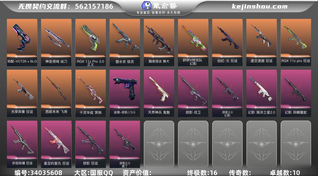 【套装】:回火礼包// V25套装,回火礼包:掠影套装,掠影//3.0套装 【英雄】:幻棱,炼狱,维斯,暮蝶,钛狐,壹决,铁臂,捷风,雷兹,幽影,不死鸟,贤者,猎枭,零,奇乐,尚勃勒,霓虹,斯凯,夜露,星礈,K/O,盖可,黑梦,钢锁 【近战武器】:近战武器-蒙太奇 战斧,近战武器-碎心裂刃,近战武器-影蝶,近战武器-神圣领域 战刀 【狂徒】:狂徒-创·纪元,狂徒-虚空遗器,狂徒-RGX 11z Pro,狂徒-光荣异象,狂徒-掠影,狂徒-盖亚的复仇,狂徒-赤焰铁骥 【幻影】:幻影-砰砰X特攻队,幻影-异鳞魔蛇,幻影-海洋之星//2.0,幻影-掠影//2.0,幻影-神圣领域,幻影-蒙太奇 【戍卫】:戍卫-掠影,戍卫-月球哨兵 【獠犬】:獠犬-黯夜怪谈,獠犬-神圣领域 【冥驹】:冥驹-千灵华绽,冥驹-星云暗涌 【飞将】:飞将-西部未来 【莽侠】:莽侠-月球哨兵 【战神】:战神-神圣领域,战神-蒙太奇 【奥丁】:奥丁-掠影//2.0 【雄鹿】:雄鹿-月球哨兵 【骇灵】:骇灵-塑水宗,骇灵-蒙太奇,骇灵-星云暗涌 【蜂刺】:蜂刺-星云暗涌 【追猎】:追猎-掠影//3.0 【VCT手枪】:标配-VCT26 x BLG 【正义】:正义-RGX 11z Pro//3.0,正义-纳米打击,正义-月球哨兵 【鬼魅】:鬼魅-天界神兵,鬼魅-...