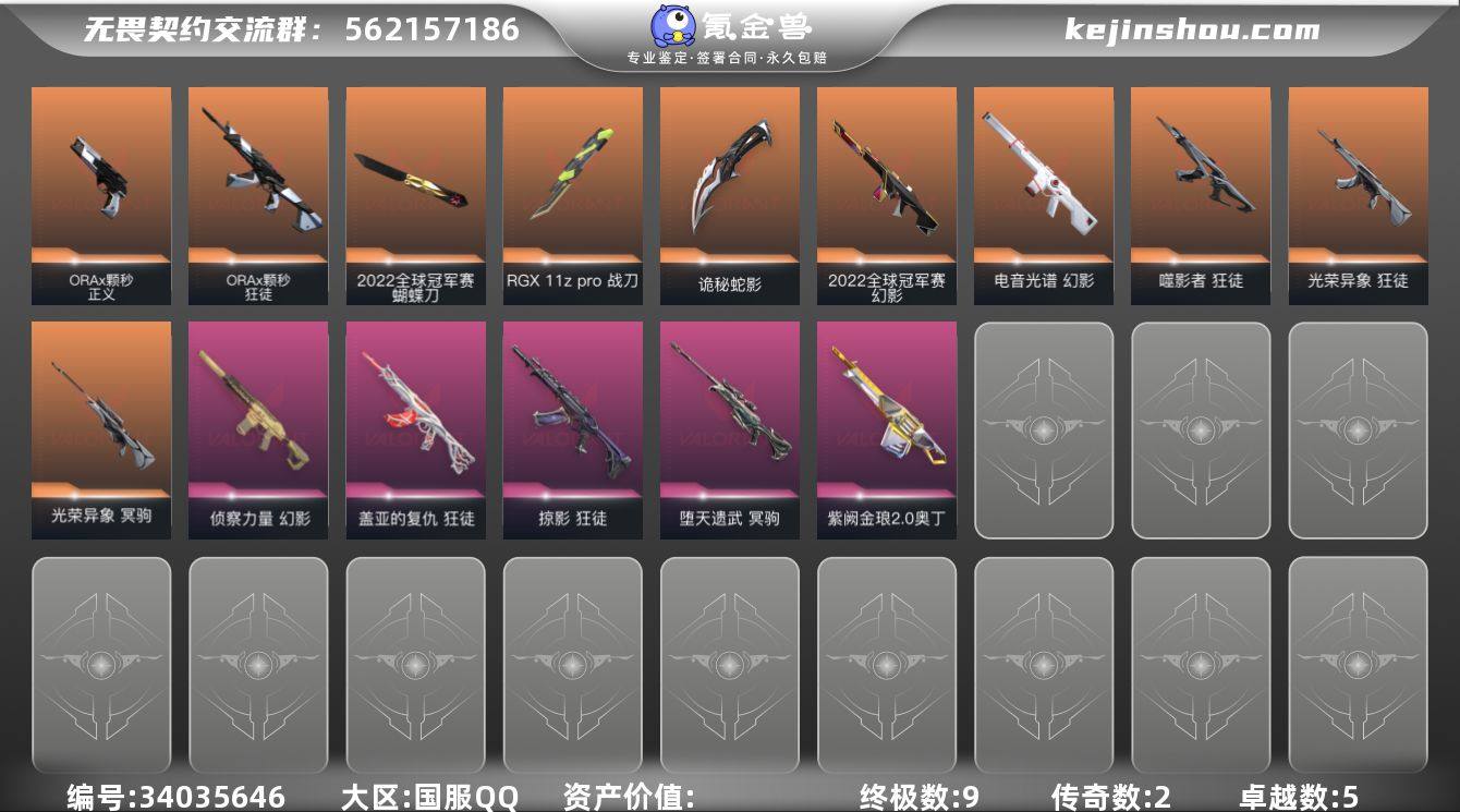 【AYQ39】【套装】:2022全球冠军赛套装 【英雄】:幻棱,炼狱,维斯,暮蝶,钛狐,壹决,铁臂,捷风,雷兹,幽影,不死鸟,贤者,猎枭,蝰蛇,零,芮娜,奇乐,尚勃勒,霓虹,斯凯,夜露,星礈,K/O,海神,盖可,黑梦,钢锁 【近战武器】:近战武器-2022全球冠军赛 蝴蝶刀,近战武器-RGX 11z Pro 战刀,近战武器-紫金爪刀,近战武器-诡秘蛇影 军刀 【狂徒】:狂徒-噬影者,狂徒-光荣异象,狂徒-ORA x 颗秒,狂徒-掠影,狂徒-盖亚的复仇,狂徒-诡秘蛇影 【幻影】:幻影-2022全球冠军赛,幻影-电音光谱,幻影-侦察力量,幻影-末日之翼,幻影-电音光谱 【戍卫】:戍卫-折光棱晶 【冥驹】:冥驹-光荣异象,冥驹-堕天遗武 【飞将】:飞将-末日之翼 【莽侠】:莽侠-诡秘蛇影 【奥丁】:奥丁-紫阙金琅//2.0,奥丁-末日之翼 【判官】:判官-诡秘蛇影 【蜂刺】:蜂刺-折光棱晶 【标配】:标配-折光棱晶 【正义】:正义-ORA x 颗秒 【鬼魅】:鬼魅-诡秘蛇影,鬼魅-星云暗涌 【狂怒】:狂怒-蒙太奇 【短炮】:短炮-末日之翼 【卡面】:树懒大作战 卡面,Clutch 卡面,无畏契约GO!第一卷:芮娜 卡面,无畏契约GO!第一卷:零 卡面,无垠星环 卡面,《双城之战》金克丝 卡面,钢锁vs盖可...