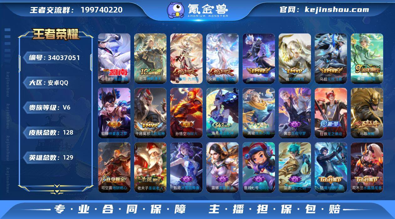 【精品男神号·v6·1珍品·10无双·怪盗基德·愿照九州拓·愿照千秋盛·圣诞老人·神威·3按键·手慢无】 安卓Q-V6-永恒钻石II段位-129英雄-128皮肤-1珍品传说-10传说-36史诗 【珍品传说】:马可波罗怪盗基德 【传说皮肤】:后羿神树通天,女娲愿照千秋盛,澜愿照九州拓,桑启鸣野蒿,澜逐花归海,马超无双飞将,镜炽阳神光,干将莫邪久胜战神,貂蝉仲夏夜之梦,孙悟空地狱火 【限定皮肤】:姜子牙天穹之誓,狄仁杰阴阳师,赵云皇家上将,孙尚香蔷薇恋人,狄仁杰魔术师,项羽海滩派对,老夫子圣诞老人,上官婉儿梁祝,艾琳流音漫舞,司空震地狱燃心,阿古朵江河有灵,张良古海寻踪,鬼谷子天穹祈灯,沈梦溪龙舞盛年,刘邦剑破天穹,程咬金群星魔术团,镜青焰无极,项羽苍威无极,周瑜熔金海岸 【年限皮肤】:女娲愿照千秋盛,澜愿照九州拓 【赛季限定】:张良古海寻踪,鬼谷子天穹祈灯,刘邦剑破天穹,姜子牙天穹之誓,东皇太一噬灭天穹,太乙真人谧流熔炉,钟馗虚灵犬护,甄姬逆浪荇歌 【战令限定】:司空震地狱燃心,艾琳流音漫舞,镜青焰无极,项羽苍威无极,亚连破空之剑,孙悟空神迹守卫,周瑜线条小狗 【史诗皮肤】:海月海之女神,周瑜线条小狗,黄忠百相守梦,狂铁龙之律动,亚...
