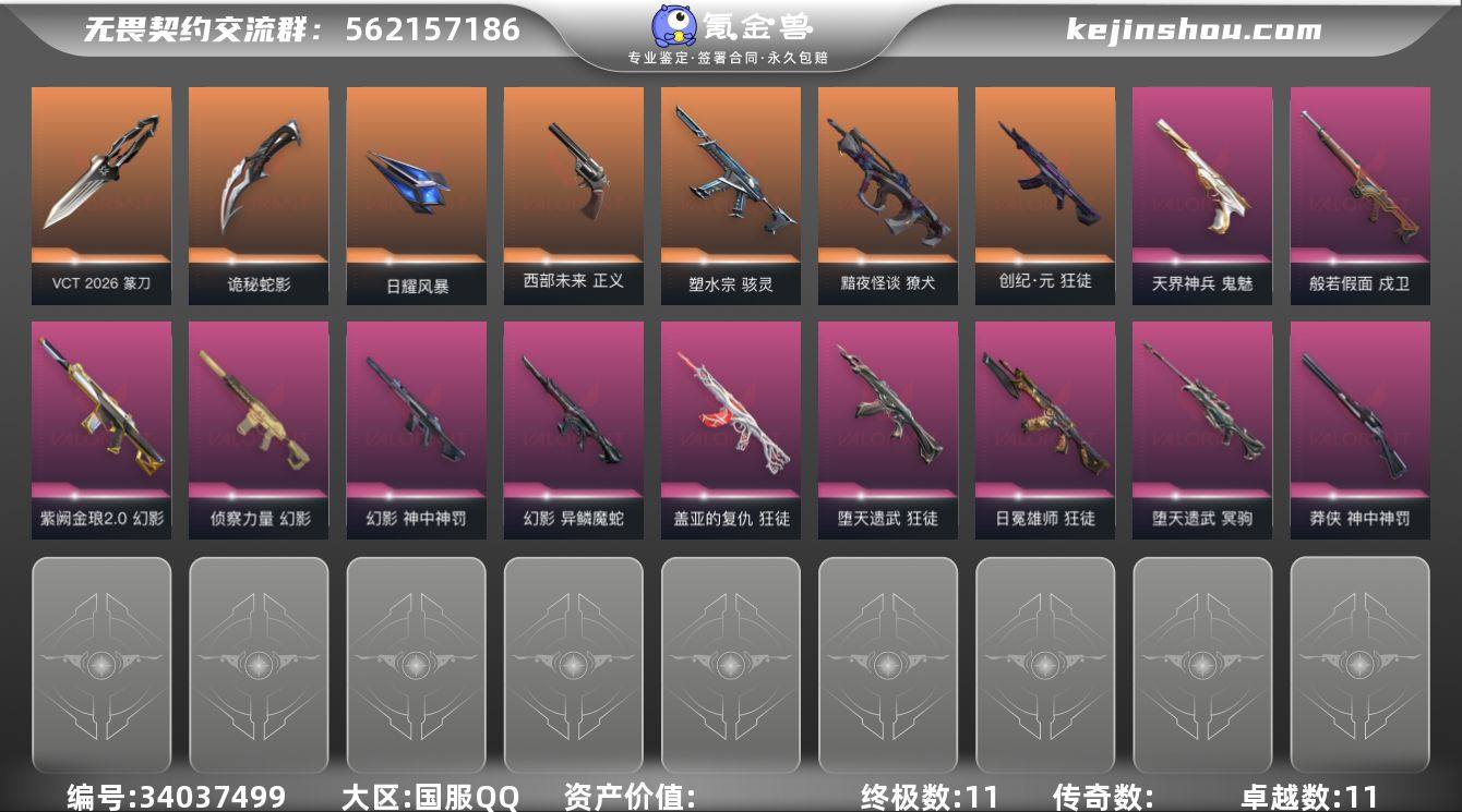 【套装】:VCT 2026 赛季套装,回火礼包// V25套装 【英雄】:幻棱,炼狱,维斯,暮蝶,钛狐,壹决,铁臂,捷风,雷兹,幽影,不死鸟,贤者,猎枭,蝰蛇,零,芮娜,奇乐,尚勃勒,霓虹,斯凯,夜露,星礈,K/O,海神,盖可,黑梦,钢锁 【近战武器】:近战武器-VCT 2026 篆刀,近战武器-剥皮小刀,近战武器-紫金爪刀,近战武器-威龙之刃,近战武器-盖亚之愠,近战武器-诡秘蛇影 军刀,近战武器-日耀风暴 遗器 【狂徒】:狂徒-创·纪元,狂徒-堕天遗武,狂徒-盖亚的复仇,狂徒-日冕雄师,狂徒-诡秘蛇影 【幻影】:幻影-侦察力量,幻影-紫阙金琅//2.0,幻影-异鳞魔蛇,幻影-神中神罚,幻影-末日之翼 【戍卫】:戍卫-般若假面,戍卫-折光棱晶 【獠犬】:獠犬-黯夜怪谈 【冥驹】:冥驹-堕天遗武 【飞将】:飞将-末日之翼 【莽侠】:莽侠-神中神罚,莽侠-诡秘蛇影 【奥丁】:奥丁-末日之翼 【判官】:判官-诡秘蛇影 【骇灵】:骇灵-塑水宗 【蜂刺】:蜂刺-折光棱晶 【标配】:标配-折光棱晶 【正义】:正义-西部未来 【鬼魅】:鬼魅-天界神兵,鬼魅-诡秘蛇影 【狂怒】:狂怒-蒙太奇 【短炮】:短炮-末日之翼 【卡面】:战术桌游 卡面,超能偶像 卡面,红鳞松叶 卡面,战术熊与伙伴...