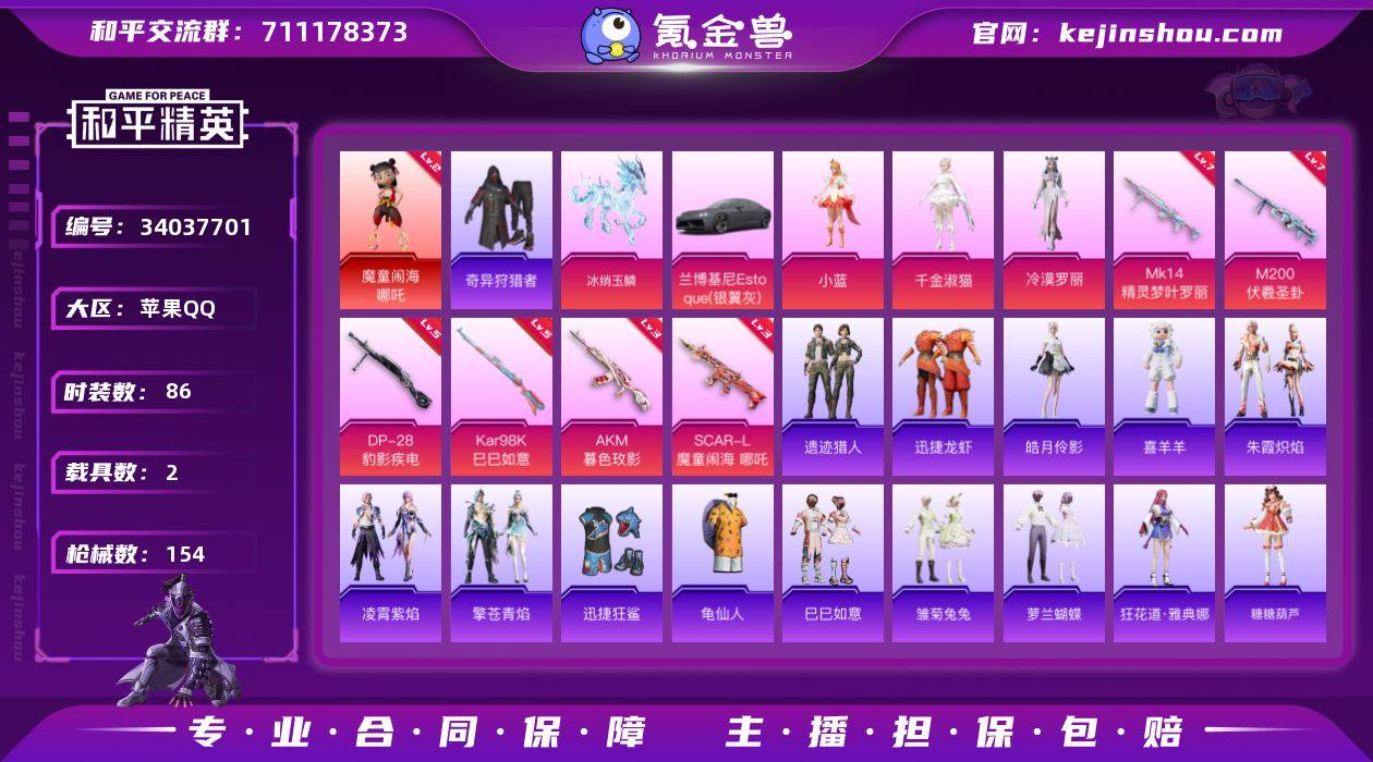 【LHPX2530】红装哪吒 【特价出售/店主推荐--两把七级枪】苹果 手Q-1神装-3粉装-6特效枪-2载具-4粉色飞行器-47816热力值-8王牌印记-86套装-154枪皮【红色神装等级】:魔童闹海-哪吒(二级)【热门品类】:套装-奇异狩猎者,套装-龟仙人【粉色套装】:角色-小蓝,角色-千金淑猫,角色-冷漠罗丽【粉色枪皮等级】:AKM-暮色玫影(三级),SCAR-L-魔童闹海 哪吒(三级),Kar98K-巳巳如意(五级),Mk14-精灵梦叶罗丽(七级),M200-伏羲圣卦(七级),DP-28-豹影疾电(五级)【粉色载具】:兰博基尼Estoque(银翼灰),冰绡玉鳞【粉色枪皮】:AKM-暮色玫影,SCAR-L-魔童闹海 哪吒,Kar98K-巳巳如意,Mk14-精灵梦叶罗丽,M200-伏羲圣卦,DP-28-豹影疾电【粉色飞行器】:万象金身飞行器,飞天猪飞行器,灵珠游龙飞行器,暮色之舞飞行器
