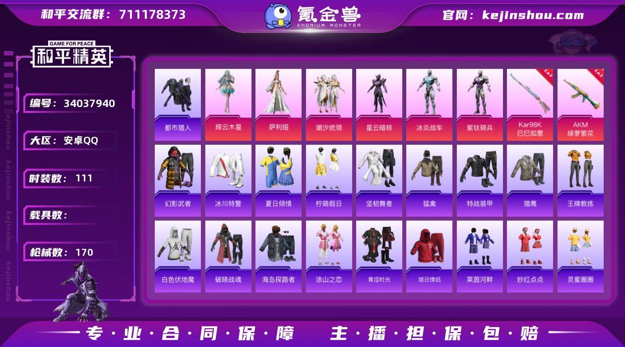 HM6946安卓Q区-6粉装-4特效枪-都市猎人 地铁天赋 42880热力值-106套装-170枪皮【优质套装】: 辉云木星 冰炎战车 紫钛骑兵 潮汐统领 星云暗核 萨利娅【特效枪等级】:Kar98K-巳巳如意(五级- Kar98K-巳巳如意)AKM-绿萝繁花(五级- AKM-绿萝繁花)【优质武器皮肤】: Kar98K-巳巳如意 AKM-绿萝繁花【稀有武器皮肤】: DBS-乌木金纹 SCAR-L-海盐豹豹 GROZA-海盐豹豹 Kar98K-巳巳如意 Mk14-冰河战士 UZI-冰河战士 M16A4-冰河战士 20-H-乌木金纹 AKM-绿萝繁花 蜜獾-乌木金纹 PKM-啾咪啾咪 M416-红色方程式 M416-潮汐统领 M416-绯红前夜 M416-摩登王国 AKM-影袭 AKM-彩虹符号 AKM-破晓战魂 AKM-龙的传人 AKM-2P战斗服款 AKM-萝萝小趴兔 SCAR-L-红色方程式 SCAR-L-玉兔迎春 SCAR-L-凝视深渊 SCAR-L-夜灯 M16A4-凝视深渊 GROZA-影袭 GROZA-懵萌河马 GROZA-2B战斗服款 AUG-耀粉歌者 AUG-凝视深渊 AUG-2P战斗服款 AUG-天降萌叽 QBZ-彩虹符号 M762-天星战神 M762-天降萌叽 Mk47-妙红点点 Mk47-摩登王国 G36C-懵萌河马 AC-VAL-快闪甜心 AC-VAL-乌木金纹 蜜獾-天降萌叽 蜜獾-垂柳戏鸭 Kar98K-2B战斗服款 Kar98K-影袭 Win94-萝萝小趴兔 Win94-星兔领航员 莫辛纳甘-乌木金纹 莫辛纳甘-懵萌河马...