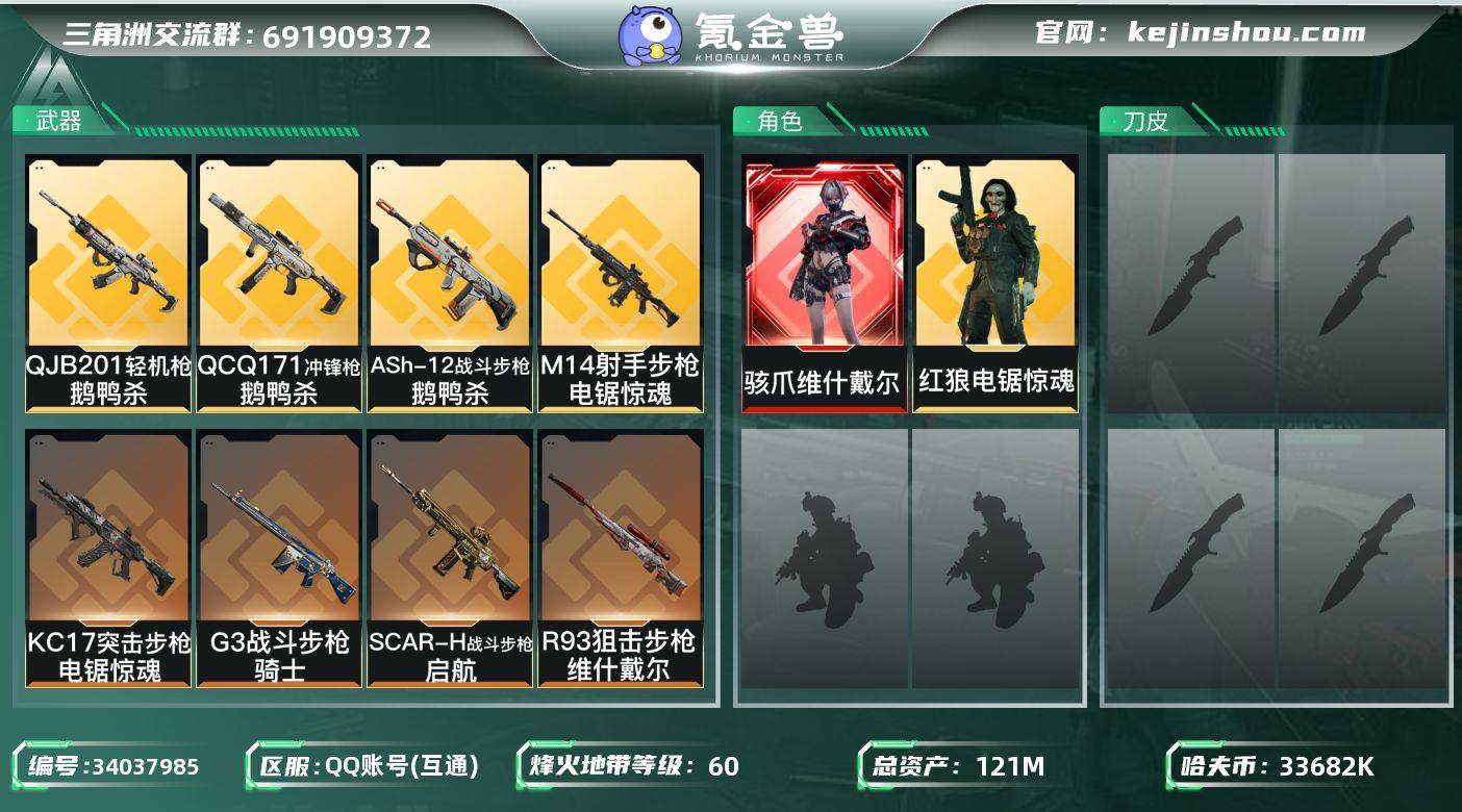 总资产(M):121M/哈夫币(K):33682K/哈夫币(K):33682K/全面战场等级:11_段位:列兵/烽火地带等级:60_段位:黑鹰/骇爪-维什戴尔/红狼-电锯惊魂/近战-黑鹰/M4A1突击步枪-阿米娅/ASh-12战斗步枪-鹅鸭杀/SCAR-H战斗步枪-启航/G3战斗步枪-骑士/CAR-15突击步枪-阿米娅/KC17突击步枪-电锯惊魂/QCQ171冲锋枪-鹅鸭杀/QJB201轻机枪-鹅鸭杀/M14射手步枪-电锯惊魂/R93狙击步枪-维什戴尔/腾龙突击步枪-猎鳄行动/MP5冲锋枪-战术竞备/MP5冲锋枪-竞技风/SR-3M紧凑突击步枪-战术竞备/勇士冲锋枪-工业狂潮/M700狙击步枪-哈夫克警备/AKM突击步枪-肃杀/QBZ95-1突击步枪-公平竞技/M7战斗步枪-精英联盟/M7战斗步枪-捣蛋鬼/SCAR-H战斗步枪-荣耀列队/腾龙突击步枪-冰天雪地/MP5冲锋枪-弄臣/MP5冲锋枪-哈夫克卫队/P90冲锋枪-黄昏/P90冲锋枪-捣蛋鬼/Vector冲锋枪-先锋/UZI冲锋枪-亚特兰蒂斯/SMG-45冲锋枪-行动开启/QJB201轻机枪-哈夫克卫队/Mini-14射手步枪-荣耀列队/G18-星链科技/G18-哈夫克航天/M4A1突击步枪-粉色涂装/M4A1突击步枪-高雅黑/QBZ95-1突击步枪-高雅黑/QBZ95-1突击步枪-三角洲力量/QBZ95-1突击步枪-海色/K416突击步枪-几何迷彩/K416突击步枪-高雅黑/M16A4突击步枪-高雅黑/AUG突击步枪-...