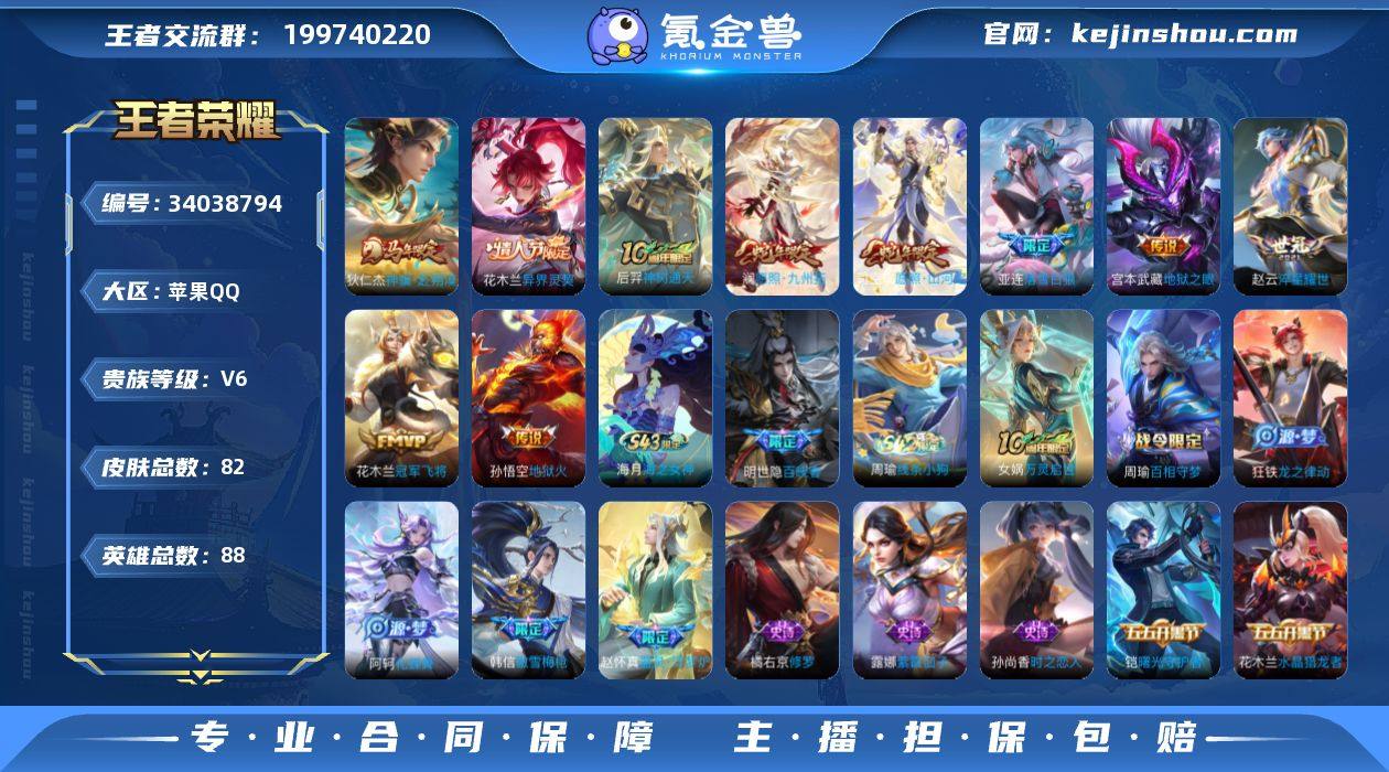 【v7极品自玩打野号·10传说·82皮肤·低价出】苹果Q-V6-至尊星耀III段位-88英雄-82皮肤-10传说-26史诗 【英雄全皮】:孙权全皮 【传说皮肤】:狄仁杰神骥赴朔漠,花木兰异界灵契,后羿神树通天,司空震愿照山河定,澜愿照九州拓,亚连落雪白狼,赵云淬星耀世,花木兰冠军飞将,宫本武藏地狱之眼,孙悟空地狱火 【限定皮肤】:狄仁杰阴阳师,赵云皇家上将,孙尚香蔷薇恋人,狄仁杰魔术师,达摩沙漠行僧,项羽海滩派对,韩信傲雪梅枪,亚连落雪白狼 【年限皮肤】:司空震愿照山河定,澜愿照九州拓 【赛季限定】:达摩沙漠行僧,太乙真人谧流熔炉,甄姬逆浪荇歌,亚瑟荣光之誓 【战令限定】:孙膑茶境仙,马超访茗客,周瑜百相守梦,孙策百相守梦,周瑜线条小狗 【史诗皮肤】:海月海之女神,明世隐百晓客,周瑜线条小狗,女娲万灵启世,周瑜百相守梦,狂铁龙之律动,阿轲化蝶舞,赵怀真器灵浮梦炉,孙膑茶境仙,韩信傲雪梅枪,孙尚香时之恋人,橘右京修罗,狄仁杰鹰眼统帅,李元芳逐浪之夏,刘禅天才门将,铠曙光守护者,百里守约特工魅影,夏侯惇乘风破浪,花木兰水晶猎龙者,曹操幽灵船长,妲己魅力维加斯,孙尚香水果甜心,孙尚香蔷薇恋人,宫本武藏鬼剑武藏,廉颇地狱岩魂,狄...