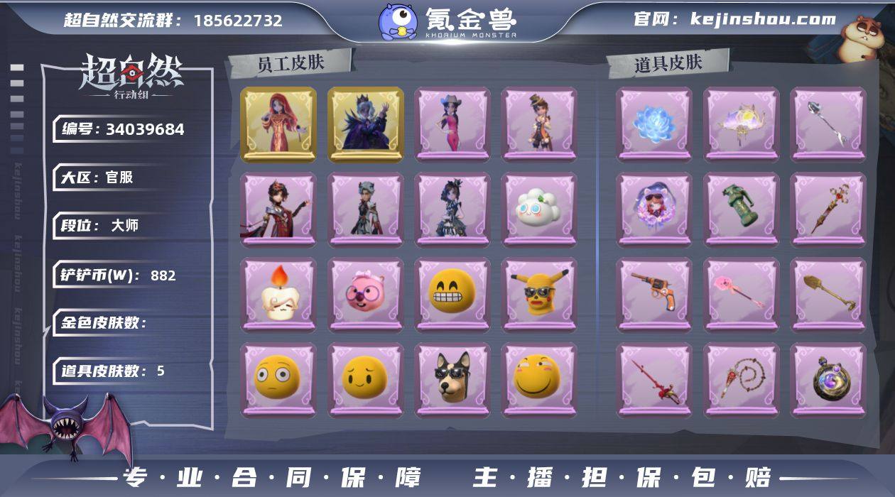 ZRX1053,金皮:2,紫皮:5,道具皮:21,外观:零-渡鸦公爵,巫铃儿-镜花辞,艾伦-黎明猎手,小黄-异色序曲,爱丽丝-耀眼的你,薇薇安-仙锋小姐,阿念-庆宴绮愿,道具:除颤仪-冰晶般的代价,黄牛能量饮料-雪顶奇愿,传送按钮-幻宠之门,铲子-龙鳞,腰包-红运福虎,折扇-露露扇,铲子-撒拉弗的祷告,长鞭-缚誓之锁,传送按钮-逆时审判,铲子-赞萌波板糖,腰包-月下莲台,摸金符-紫霄,急救包-末章心跳,额外的背包-飞花令,腰包-私藏的银河,腰包-惊魂娃娃,闪光弹-金戈玄铜,桃木剑-绯色遗证,夜视仪-金丝眼镜,转轮手枪-新星时代,折扇-赴此良宵,美妆:美妆-天使之泪,饰品:头饰-面具马头套,头饰-马上有钱,头饰-鱼头怪头套,头饰-精致露比头套,头饰-腊肠扭扭,头饰-呆滞头套,头饰-饺饺者头套,头饰-滑稽头套,头饰-萨卡班甲鱼头套,头饰-卑微头套,头饰-蒜了八,头饰-哈士奇头套,头饰-嘻嘻头套,头饰-烛光纪念,头饰-烈焰红唇头套,头饰-粽小宝头套,头饰-后室幸存者头套,头饰-像素朋克墨镜,挂饰-尘封旧事,挂饰-拂云仙,挂饰-钗头凤,挂饰-未竟乐园,挂饰-九色祥鹿,挂饰-晚安小熊,挂饰-孤独对望,背饰-蝶恋花,背饰-牛啤背包,背饰-子夜证词,背饰-白鼬趴趴,动作:动作-金城舞,动作-孤身摇,动作-不孬摇,动作-心跳摇,动作-鹏友摇,动作-...