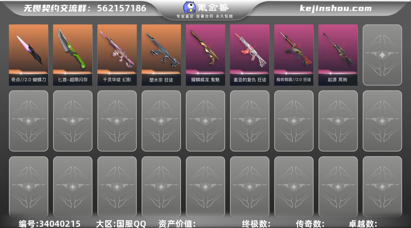【英雄】:幻棱,炼狱,维斯,暮蝶,钛狐,壹决,铁臂,捷风,雷兹,幽影,不死鸟,贤者,猎枭,蝰蛇,零,芮娜,奇乐,尚勃勒,霓虹,斯凯,夜露,星礈,K/O,海神,盖可,黑梦,钢锁 【近战武器】:近战武器-奇点//2.0 蝴蝶刀,近战武器-超能偶像 应援棒,近战武器-超限闪存 匕首 【狂徒】:狂徒-塑水宗,狂徒-般若假面//2.0,狂徒-盖亚的复仇,狂徒-耀鳞威龙,狂徒-超能偶像 【幻影】:幻影-千灵华绽,幻影-超限闪存,幻影-聚合之力 【戍卫】:戍卫-超能偶像,戍卫-浮光跃金 【獠犬】:獠犬-采蜜小蜂队,獠犬-模拟赫兹 【冥驹】:冥驹-起源,冥驹-模拟赫兹 【飞将】:飞将-聚合之力 【莽侠】:莽侠-超限闪存 【战神】:战神-采蜜小蜂队,战神-浮光跃金 【判官】:判官-超能偶像,判官-采蜜小蜂队 【雄鹿】:雄鹿-模拟赫兹 【骇灵】:骇灵-浮光跃金 【蜂刺】:蜂刺-超限闪存,蜂刺-聚合之力 【标配】:标配-超能偶像,标配-浮光跃金 【正义】:正义-超限闪存,正义-传奇制造 【鬼魅】:鬼魅-耀鳞威龙,鬼魅-采蜜小蜂队,鬼魅-模拟赫兹,鬼魅-星云暗涌 【狂怒】:狂怒-聚合之力 超级无敌白银大王可排位小号 【卡面】:《双城之战》拥抱 卡面,精灵大战 卡面,欢迎来到底城 卡...
