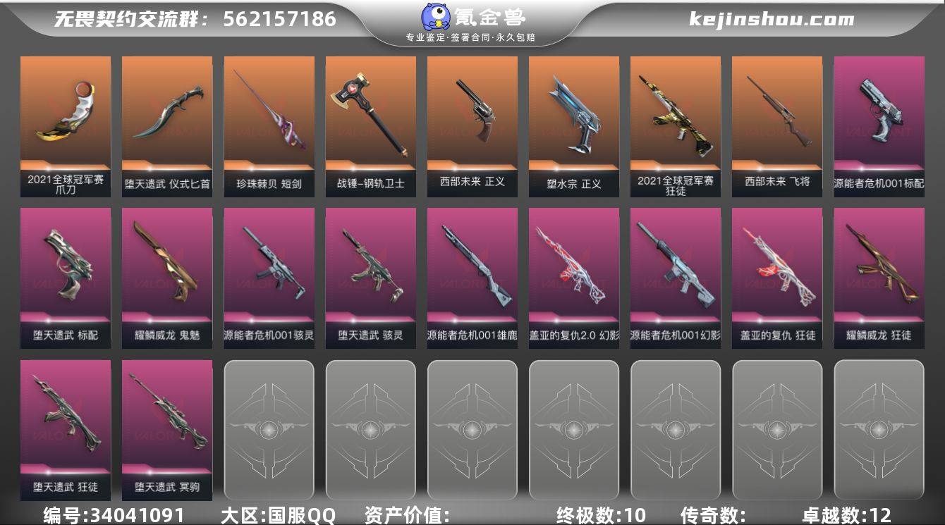 【套装】:2021全球冠军赛套装,源能者危机001套装,堕天遗武套装,耀鳞威龙套装 【英雄】:幻棱,炼狱,维斯,暮蝶,钛狐,壹决,铁臂,捷风,雷兹,幽影,不死鸟,贤者,猎枭,蝰蛇,零,芮娜,奇乐,尚勃勒,霓虹,斯凯,夜露,星礈,K/O,海神,盖可,黑梦,钢锁 【近战武器】:近战武器-2021全球冠军赛 爪刀,近战武器-威龙之刃,近战武器-珍珠棘贝 短剑,近战武器-堕天遗武 仪式匕首,近战武器-钢轨卫士 战锤,近战武器-再见安打 【狂徒】:狂徒-2021全球冠军赛,狂徒-堕天遗武,狂徒-盖亚的复仇,狂徒-耀鳞威龙,狂徒-钢轨卫士 【幻影】:幻影-盖亚的复仇//2.0,幻影-源能者危机001,幻影-珍珠棘贝,幻影-战术小伙伴 【戍卫】:戍卫-钢轨卫士,戍卫-珍珠棘贝,戍卫-战术熊与伙伴们 【獠犬】:獠犬-复古浪潮,獠犬-战术小伙伴 【冥驹】:冥驹-堕天遗武,冥驹-复古浪潮 【飞将】:飞将-西部未来,飞将-光导纤维,飞将-战术熊与伙伴们 【莽侠】:莽侠-深海水族,莽侠-纤云弄巧 【战神】:战神-深海水族 【奥丁】:奥丁-流星兵团,奥丁-战术小伙伴 【雄鹿】:雄鹿-源能者危机001,雄鹿-复古浪潮 【骇灵】:骇灵-堕天遗武,骇灵-源能者危机001,骇灵-流星兵团,骇灵-珍珠棘...