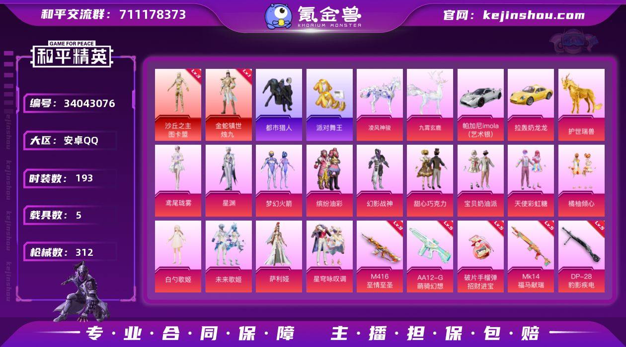 【AYH870】【素材小号 都市,金鞋,哥特】安卓 手Q-2神装-13粉装-18特效枪-5载具-12粉色飞行器-106591热力值-15王牌印记-193套装-312枪皮【红色神装等级】:金蛇镇世-烛九(一级),沙丘之主-图卡盟(三级)【红色角色神装】:金蛇镇世-烛九,沙丘之主-图卡盟【热门品类】:粉装-梦幻火箭,粉装-缤纷油彩,套装-浪漫天命,套装-都市猎人,套装-派对舞王,套装-暗影哥特,角色-8号机,角色-Mark.06【粉色套装】:粉装-幻影战神,粉装-甜心巧克力,粉装-宝贝奶油派,粉装-天使彩虹糖,粉装-梦幻火箭,粉装-缤纷油彩,粉装-橘柚倾心,角色-白勺歌姬,粉装-未来歌姬,角色-萨利娅,粉装-星穹咏叹调,角色-星渊,角色-鸢尾珑雾【粉色枪皮等级】:AKM-幻海仙踪(五级),SCAR-L-灵驹仙姬(三级),M416-至情至圣(九级),M416-墨龙九天(三级),AUG-暖羊咩咩(五级),M762-青锋波束(五级),UMP45-量子极限(五级),AKS-74U-星穹咏叹调(四级),P90-沙丘之主(三级),Kar98K-巳巳如意(五级),Kar98K-圣域龙灵(三级),Mk14-甜梦熊击(五级),Mk14-福马献瑞(五级),AMR-智耀战神(四级),AA12-G-萌骑幻想(五级),DP-28-豹影疾电(五级),MG-36-沧焰双生(五级),破片手榴弹-招财进宝(五级)【粉色载具】:...