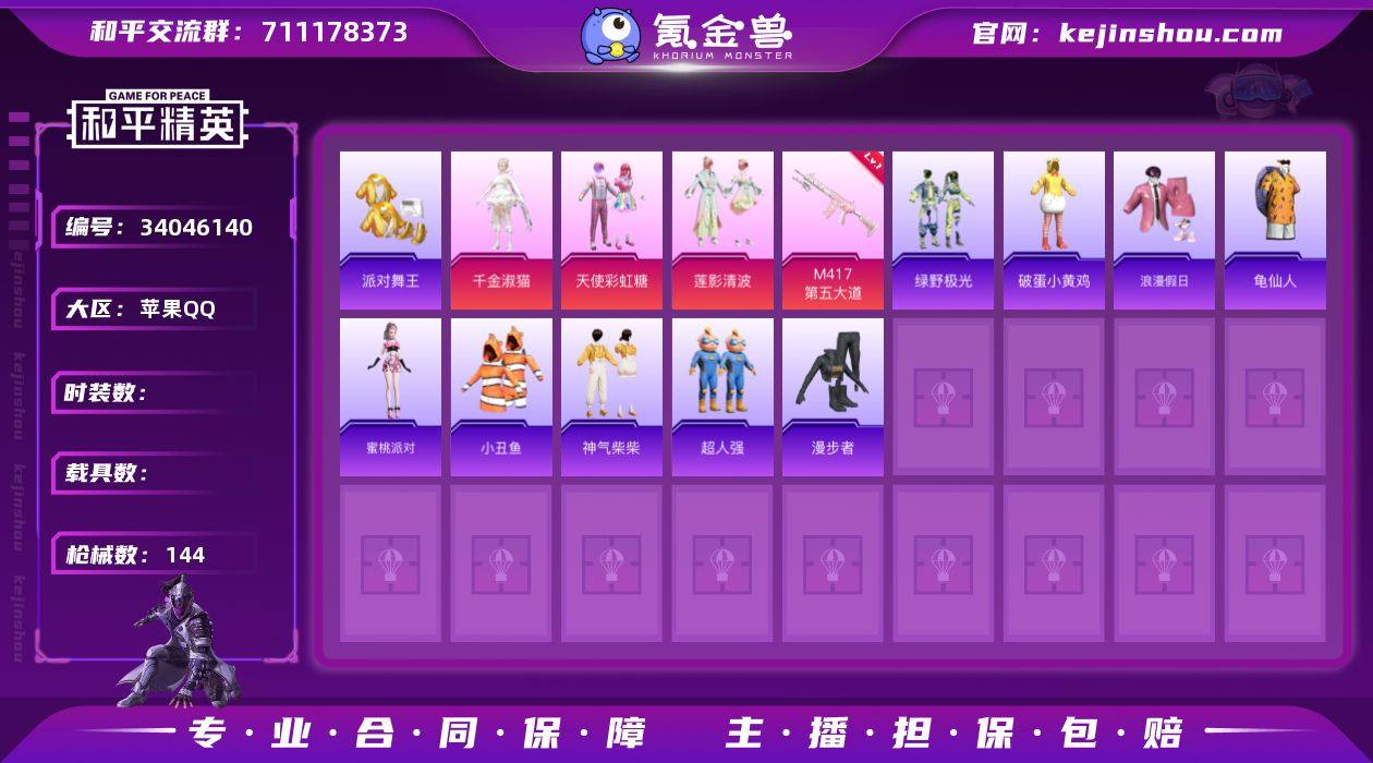 XS11472【3粉装-5特效枪 派对舞王,小丑鱼】苹果手Q-3粉装-5特效枪-122套装-144枪皮-3王牌印记-传奇王牌9星-44257热力值