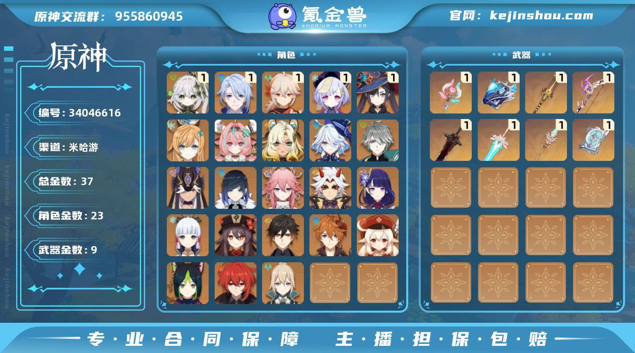 59级/37黄/男主/23个五星角色/9个五星武器/芙宁娜/爱可菲/胡桃/一命纳西妲/钟离/一命枫原万叶/神里绫华/八重神子/雷电将军/夜兰/达达利亚/希诺宁/瓦雷莎/一命莫娜/荒泷一斗/提纳里/一命神里绫人/可莉/赛诺/一命七七/琴/艾尔海森/迪卢克/飞雷之弦振/溢彩心念/万世流涌大典/赤沙之杖/天空之脊/狼的末路/四风原典/天空之傲