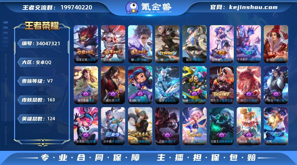 英雄 163皮肤 可二次 可修改实名 女号 【稀有英雄】大司命,韩信(韩跳跳),夏洛特(夏师傅),艾琳,橘右京(橘子),娜可露露(鸟人),不知火舞,赵云,金蝉(唐僧),戈娅 【传说皮】淬星耀世,云鹰飞将(小将军),音你闪耀(rap皮),山海·苍雷引(电光曜子),澜逐花归海 【珍宝阁皮】蔷薇恋人,玩趣恶龙 【赛季/战令皮】古海寻踪(s33),星界游侠,海盐诗旅(s30),擒涛扼浪(s31),探海日志(s32),驭风魔法,玲珑珍味,顽趣-梦奇,剑破天穹(s35),天穹祈灯(s34),天穹之誓(s36),暖冬·兔眠,原初探秘者(s21),万华元夜(s22),演武夺筹(s23),驱傩正仪(s24),千军破阵(s25),猎兽之王,潮玩骑士王,云间偶戏,电玩高手(电玩铁子),午后时光,大漠名商(s28),云中旅人(s29),超时空战士-钟无艳,落雪兰心 【史诗皮】琥珀纪元伽罗,电玩小子(小书包),千年之狐,蒙恬荣光圣徽,高渐离燃音魔法,百解令(蒙犽),江河有灵,电玩·爆裂旋风,晚萤,猫狗日记-孙策,乱世虎臣,修罗,女仆咖啡,摇滚巨星,水果甜心,星夜王子,心灵骇客,功夫厨神,德古拉伯爵,暗隐猎兽者,鬼剑武藏,舞动绿茵,地狱岩魂,纤云弄巧,缤纷独角兽,逐浪之夏,水晶猎龙者,金属风暴,鹰眼统帅,魅力维加斯,赏金猎手,无心,未来纪元-赵云 【限定皮】白虎志(电光耗子),山海·碧波行(瑶年限),...