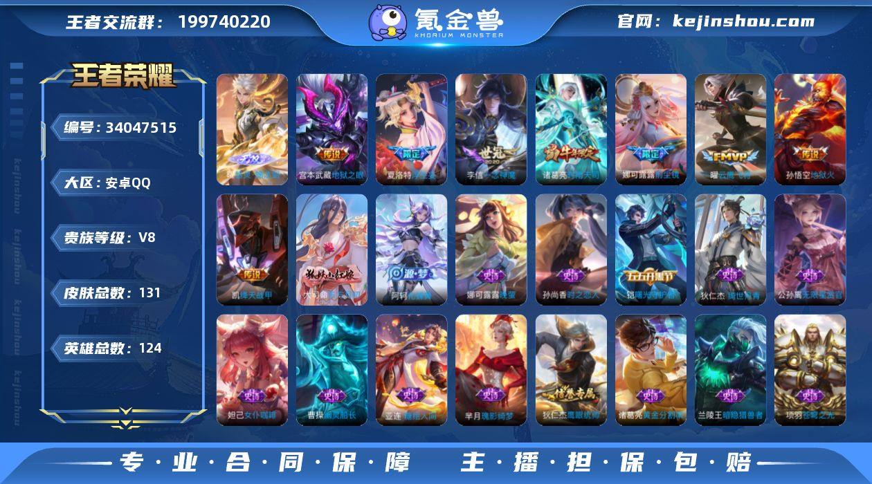 V8 1无双 1珍品传说 13传说 124英雄 131皮肤 可二次 可修改实名 男号 【英雄全皮】娜可露露全皮,孙权全皮,蚩奼全皮,影全皮,大禹全皮 【稀有英雄】敖隐(小龙人),大司命,嬴政(始皇帝),韩信(韩跳跳),夏洛特(夏师傅),橘右京(橘子),娜可露露(鸟人),不知火舞,赵云,戈娅 【无双皮】器灵·螭龙剑 【珍品传说】沧流箭 【传说皮】神骥·赴朔漠,神骥·逐星野,地狱火,地狱之眼,末日机甲-孙尚香(绿蚂蚱),一念神魔,云鹰飞将(小将军),绛天战甲(鸡嘴战神),浮生妄 【赛季/战令皮】海盐诗旅(s30),擒涛扼浪(s31),探海日志(s32),地狱燃心,天穹之誓(s36),蔡文姬夏日便利店,虞姬夏日便利店,电玩高手(电玩铁子),午后时光,大漠名商(s28) 【史诗皮】茶境仙,糖绘人间,绮世丹青,化蝶舞,东方月初,瑰影绮梦,罗小黑战记-百里玄策,海之女神,天穹守望者,线条小狗-周瑜,线条小狗-小乔,苍穹之光,黄金分割率,冰冠公主,晚萤,无限星赏官,真我赫兹(百里守约),末日机甲-吕布,猫狗日记-孙策,时之恋人-孙尚香,女仆咖啡,水果甜心,暗隐猎兽者,幽灵船长,舞动绿茵,地狱岩魂,逐浪之夏,龙鼓争鸣,曙光守护者,鹰眼统帅,魅力维加斯,赏金猎手,无心 【限定皮】愿照·众生和(妲己年限),前尘镜,时雨天司(水龙头),御风骁将(吕布年限),默契...