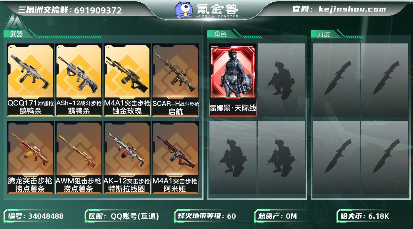 资产165M/哈夫币618万/传说近战数1/传说枪皮数27/战场等级26/行动等级60/安全箱等时效性道具以游戏内数据为准,详情请看图/露娜-黑·天际线/红狼-电锯惊魂/露娜-金牌射手/近战-处刑者1级/黑鹰/M4A1突击步枪-蚀金玫瑰/M4A1突击步枪-阿米娅/AKM突击步枪-锦绣/ASh-12战斗步枪-鹅鸭杀/AUG突击步枪-悠然茶歇/SG552突击步枪-运动员/AK-12突击步枪-特斯拉线圈/SCAR-H战斗步枪-启航/CAR-15突击步枪-阿米娅/腾龙突击步枪-捞点薯条/腾龙突击步枪-死神玫瑰/K437突击步枪-锦绣/KC17突击步枪-电锯惊魂/47突击步枪-悠然茶歇/Vector冲锋枪-能天使-午夜邮差/UZI冲锋枪-特斯拉线圈/UZI冲锋枪-悠然茶歇/SMG-45冲锋枪-锦绣/SR-3M紧凑突击步枪-特斯拉线圈/勇士冲锋枪-能天使-午夜邮差/QCQ171冲锋枪-鹅鸭杀/QCQ171冲锋枪-不羁人生/QJB201轻机枪-鹅鸭杀/SKS射手步枪-骑士/AWM狙击步枪-捞点薯条/93R-捞点薯条/复合弓-黑-天际线/QBZ95-1突击步枪-曙光/K416突击步枪-冬日风情/K416突击步枪-阿萨拉特攻/K416突击步枪-缄默情歌/AUG突击步枪-蝮蛇/AUG突击步枪-甜心子弹/M7战斗步枪-百步穿杨/SG552突击步枪深海恐惧/SG552突击步枪-哈夫克警备/SCAR-H战斗步枪-囚徒/G3战斗步枪-流沙送葬/G3战斗步枪-哈夫克警备...