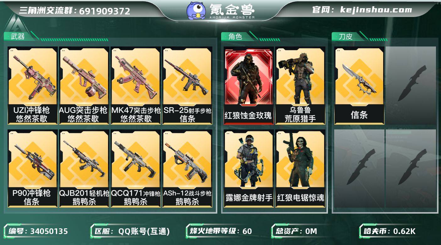 261m总资产-621k哈夫币-60烽火等级-钻石-8战场等级-列兵 【干员外观】:红狼-蚀金玫瑰,蜂医-送葬人·无题密令,红狼-电锯惊魂,露娜-金牌射手,乌鲁鲁-荒原猎手 【近战皮肤】:近战-信条,近战-黑鹰 【典藏外观】:M7战斗步枪-棱镜攻势S2 【典藏外观成色】:M7战斗步枪-棱镜攻势S2(优品C) 【传说外观】:M4A1突击步枪-蚀金玫瑰,M4A1突击步枪-阿米娅,ASh-12战斗步枪-鹅鸭杀,K416突击步枪-行动记录,AUG突击步枪-悠然茶歇,SG552突击步枪-运动员,AK-12突击步枪-特斯拉线圈,SCAR-H战斗步枪-启航,SCAR-H战斗步枪-荼蘼,G3战斗步枪-骑士,CAR-15突击步枪-阿米娅,腾龙突击步枪-捞点薯条,腾龙突击步枪-万金泪冠,KC17突击步枪-电锯惊魂,MK47突击步枪-悠然茶歇,P90冲锋枪-信条,UZI冲锋枪-特斯拉线圈,UZI冲锋枪-悠然茶歇,SR-3M紧凑突击步枪-特斯拉线圈,SR-3M紧凑突击步枪-荼蘼,勇士冲锋枪-能天使-午夜邮差,QCQ171冲锋枪-鹅鸭杀,725双管霰弹枪-送葬人-无题密令,PKM通用机枪-荼蘼,M250通用机枪-骑士之心,QJB201轻机枪-鹅鸭杀,M14射手步枪-蛮荒,M14射手步枪-缄花,SR-25射手步枪-信条,SR-25射手步枪-缄花,AWM狙击步枪-捞点薯条,.357左轮-缄花,93R-捞点薯条 【史...