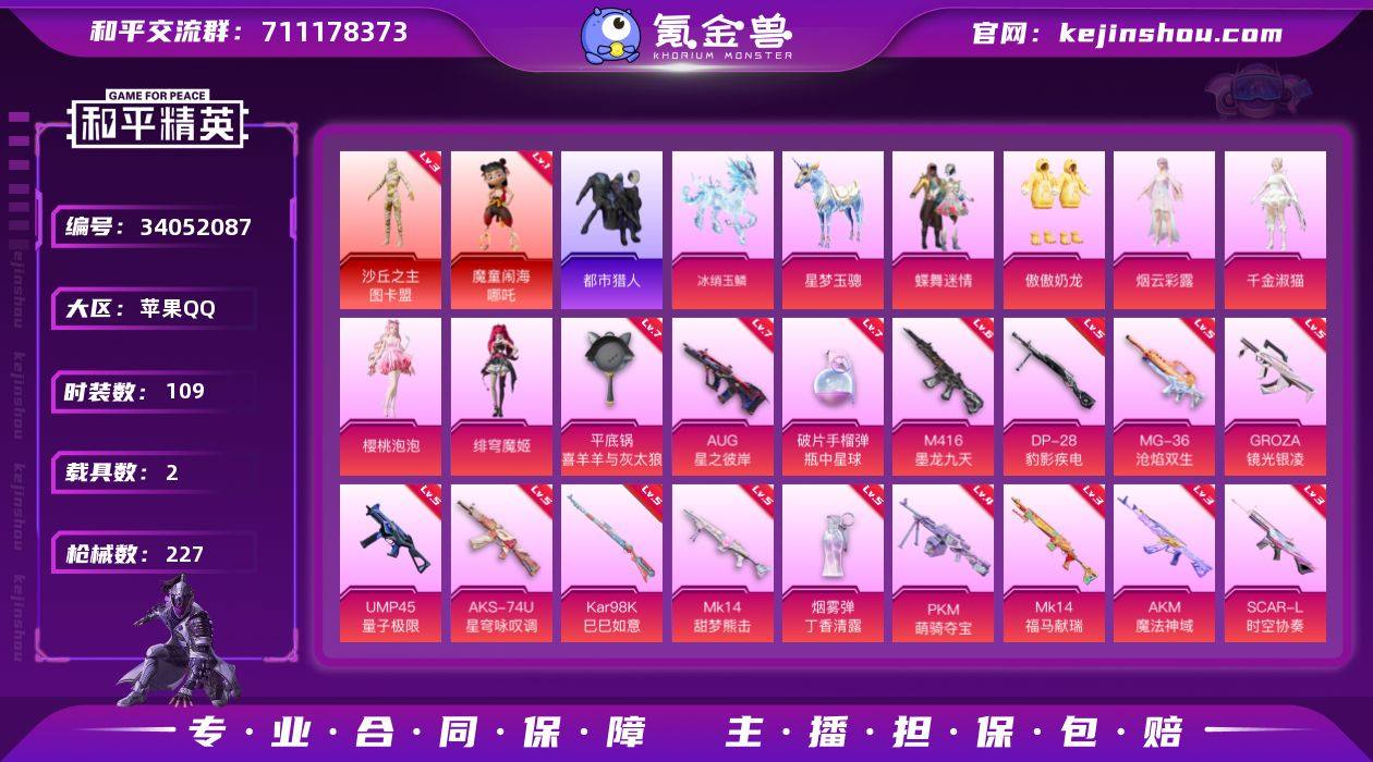 【LHPX2754】11印记 红装哪吒一级图卡盟(三级)/无敌战神框1【特价出售/店主推荐--热门套装都市小丑鱼樱桃泡泡】 苹果手Q-无敌战神框-2神装-6粉装-18特效枪-2载具-11粉色飞行器-76655热力值-11王牌印记-109套装-227枪皮【红色神装等级】:魔童闹海-哪吒(一级),沙丘之主-图卡盟(三级)【热门品类】:套装-都市猎人,套装-小丑鱼,套装-龟仙人,套装-粉红小猪【粉色套装】:粉装-蝶舞迷情,粉装-傲傲奶龙,角色-烟云彩露,角色-千金淑猫,角色-樱桃泡泡,角色-绯穹魔姬【粉色枪皮等级】:AKM-魔法神域(三级),SCAR-L-时空协奏(三级),M416-心之恋语(一级),M416-墨龙九天(六级),GROZA-镜光银凌(五级),AUG-星之彼岸(七级),UMP45-量子极限(五级),AKS-74U-星穹咏叹调(五级),P90-沙丘之主(三级),Kar98K-巳巳如意(五级),Mk14-甜梦熊击(五级),Mk14-福马献瑞(三级),DP-28-豹影疾电(五级),PKM-萌骑夺宝(四级),MG-36-沧焰双生(五级),平底锅-喜羊羊与灰太狼(七级),烟雾弹-丁香清露(五级),破片手榴弹-瓶中星球(七级)【粉色载具】:星梦玉骢,冰绡玉鳞【粉色枪皮】:AKM-魔法神域,SCAR-L-时空协奏,M416-心之恋语,M416-墨龙九天,GROZA-镜光银凌,AUG-星之彼岸,UMP45-量子极...