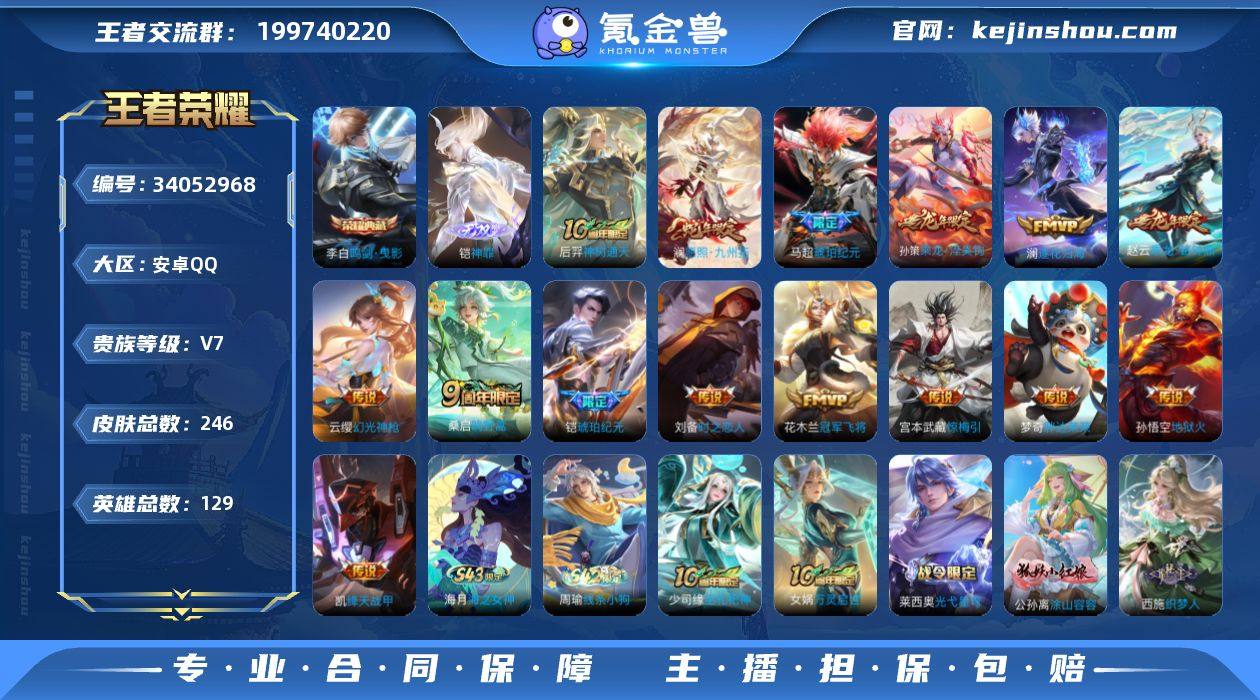 【WZAHC3176】贵族等级7/荣耀典藏数量1/传说皮肤数量15/史诗皮肤数量73/皮肤数量246/英雄数量129/段位至尊星耀/孙权全皮/空空儿全皮/鸣剑·曳影/神罪/时之恋人-刘备/神树通天/愿照·九州拓/幻光神枪/鸣野蒿/乘龙·淬吴钩/乘龙·铭钟鼎/琥珀纪元马超/琥珀纪元铠/澜逐花归海/惊梅引/绛天战甲/冠军飞将/胖达荣荣/地狱火/蒙犽顽岩魄/天穹之誓(s36)/破阵·退雄兵/阴阳师/皇家上将/高山流水/云间偶戏/无心/魔术师/万华元夜(s22)/星际陆战队-达摩/海滩派对/醍醐杖(s20)/演武夺筹(s23)/金庭之子(s27)/潮玩骑士王/至尊宝/大圣娶亲/驱傩正仪(s24)/饕餮(s9)/原初探秘者(s21)/原初追遂者/混沌棋(s18)/李小龙/纤云弄巧/拒霜思/探海日志(s32)/流音漫舞/地狱燃心/江河有灵/古海寻踪(s33)/百解令(蒙犽)/高渐离燃音魔法/妲己灵卜魔法/鬼谷子天穹祈灯(S34)/琥珀纪元伽罗/妄想食味/超元猎域/龙武盛年/蔬乡物语(鲁班七号)/蔬乡物语(李元芳)/剑破天穹(s35)/程咬金群星魔术团/青焰无极/苍威无极/刘备异域游侠/芈月浮光幕影/熔金海岸/噬灭天穹(s37)/谧流熔炉/虚灵犬护/逆浪荇歌/荣光之誓/星界战将/破空之剑/神迹守卫/茶境仙/访茗客/光弋星穹/往忆晖光/线条小狗-周瑜/海月海之女神/巫礼祀神/万灵启世/涂山容...