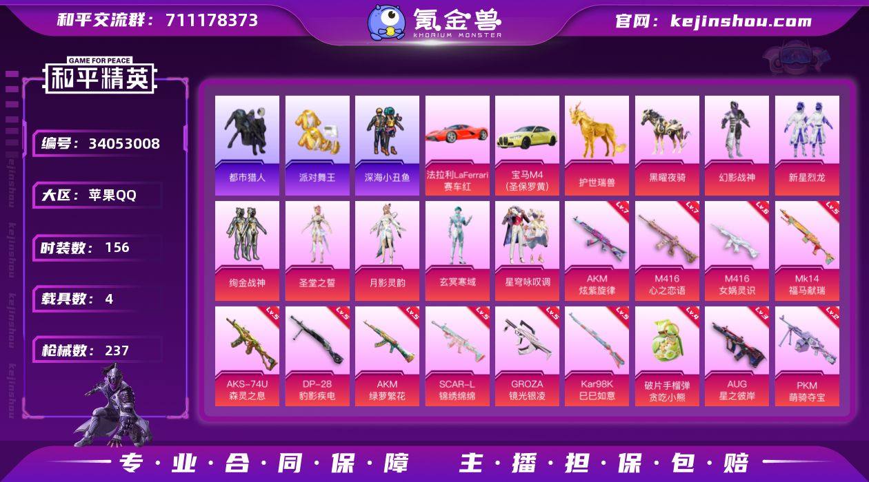 【LHPX2682】14印记 身法素材号/扭蛋碎片1155【特价出售/店主推荐--热门套装都市金鞋】苹果 手Q-7粉装-13特效枪-4载具-9粉色飞行器-78417热力值-14王牌印记-156套装-237枪皮【热门品类】:套装-浪漫天命,套装-都市猎人,套装-派对舞王,套装-深海小丑鱼【粉色套装】:粉装-幻影战神,粉装-新星烈龙,粉装-绚金战神,角色-圣堂之誓,角色-月影灵韵,角色-玄冥寒域,粉装-星穹咏叹调【粉色枪皮等级】:AKM-炫紫旋律(七级),AKM-绿萝繁花(五级),SCAR-L-锦绣绵绵(五级),M416-心之恋语(七级),M416-女娲灵识(六级),GROZA-镜光银凌(五级),AUG-星之彼岸(三级),AKS-74U-森灵之息(五级),Kar98K-巳巳如意(五级),Mk14-福马献瑞(五级),DP-28-豹影疾电(五级),PKM-萌骑夺宝(二级),破片手榴弹-贪吃小熊(四级)【粉色载具】:法拉利LaFerrari(赛车红),宝马M4(圣保罗黄),护世瑞兽,黑曜夜骑【粉色枪皮】:AKM-炫紫旋律,AKM-绿萝繁花,SCAR-L-锦绣绵绵,M416-心之恋语,M416-女娲灵识,GROZA-镜光银凌,AUG-星之彼岸,AKS-74U-森灵之息,Kar98K-巳巳如意,Mk14-福马献瑞,DP-28-豹影疾电,PKM-萌骑夺宝,破片手榴弹-贪吃小熊【粉色飞行器】:炫彩糖果飞行器,祥瑞起舞飞行器,...