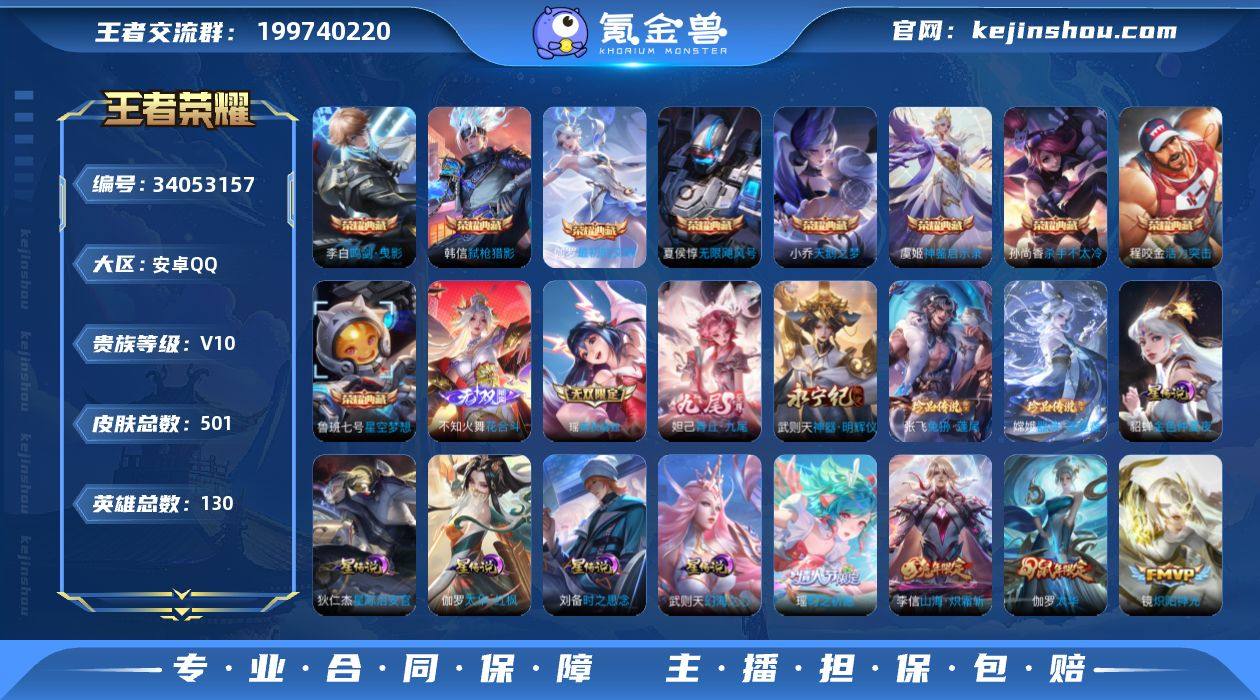 0典藏·5无双·2珍品·6星传说·41传说·2天幕·501皮肤·17按键·607个性戳戳·青丘九尾·花合斗·无相·太华红枫·甜蜜冒险天幕·顶级玩家天幕·鸣剑曳影·弑枪猎影·嘉儿宝·碧琪宝·无二次包过】w27255-安卓Q-130英雄-501皮肤-23王者印记-300铭文-贵族积分26w【贵族10】【10典藏·5无双·2珍品·6星传说·41传说·2天幕·17按键·607个性戳戳·272幸运值】【因赛季更新游戏段付以上号为准!】 【英雄全皮】:刘禅全皮,老夫子全皮,刘邦全皮,孙权全皮,狂铁全皮,猪八戒全皮,敖隐全皮,阿古朵全皮,金蝉全皮,戈娅全皮,空空儿全皮,影全皮,海诺全皮 【荣耀典藏】:武则天英雄,夏侯惇无限飓风号,小乔天鹅之梦,孙尚香杀手不太冷,鲁班七号星空梦想,程咬金活力突击,李白鸣剑曳影,韩信弑枪猎影,虞姬神鉴启示录,伽罗最初的交响 【无双皮肤】:孙悟空无相,不知火舞花合斗,瑶真我赫兹,妲己青丘九尾,武则天神器明辉仪 【珍品传说】:张飞兔狲蓬尾,嫦娥器灵落星盏 【星元皮肤】:貂蝉金色仲夏夜,武则天幻海之心,刘备时之思念,狄仁杰星际治安官,鲁班七号寅虎焰心,伽罗太华红枫 【天幕】:甜蜜冒险天幕,顶级玩家天幕 【传说皮肤】:朵莉亚神骥鸣幻洲,后羿神树通天,女娲愿照千秋盛,桑启...
