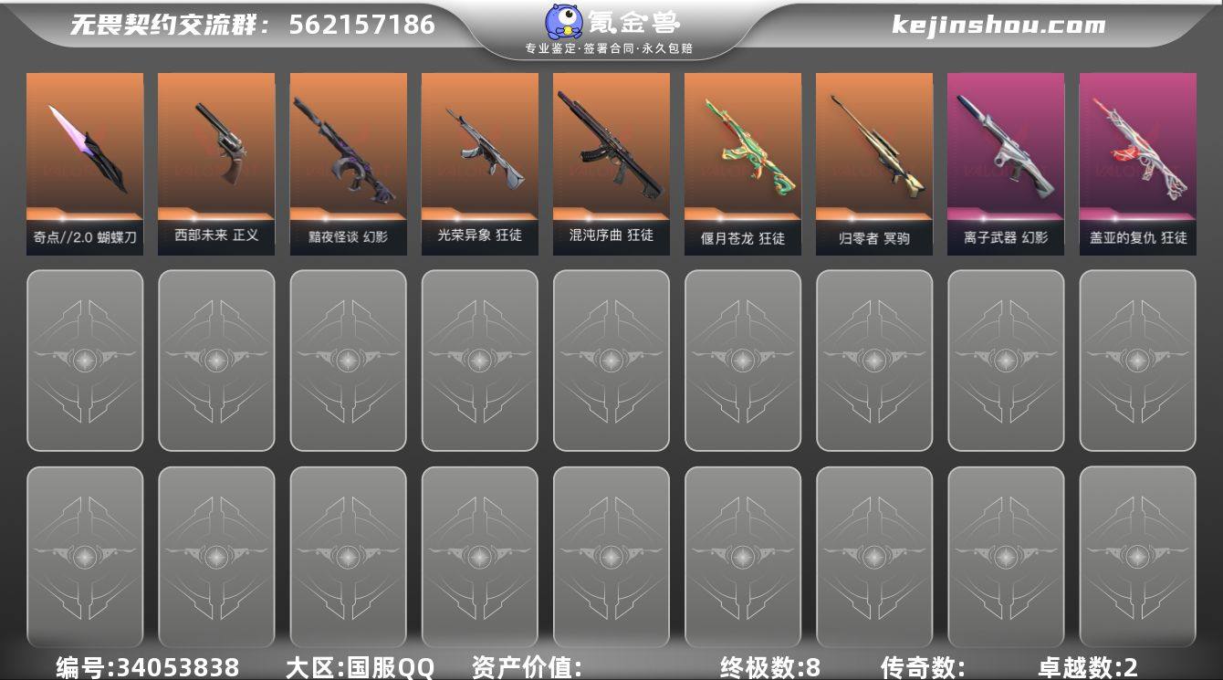 【英雄】:幻棱,炼狱,暮蝶,壹决,铁臂,捷风,幽影,不死鸟,贤者,猎枭,蝰蛇,零,芮娜,尚勃勒,斯凯,夜露,K/O,盖可,黑梦,钢锁 【近战武器】:近战武器-影钩,近战武器-奇点//2.0 蝴蝶刀 【狂徒】:狂徒-混沌序曲,狂徒-偃月苍龙,狂徒-光荣异象,狂徒-盖亚的复仇 【幻影】:幻影-黯夜怪谈,幻影-离子武器 【冥驹】:冥驹-归零者 【标配】:标配-超能偶像 【正义】:正义-西部未来,正义-复古浪潮 【鬼魅】:鬼魅-流星兵团 【狂怒】:狂怒-蒙太奇 【卡面】:《双城之战》拥抱 卡面,欢迎来到底城 卡面,南瓜盛典 卡面,修车达人 卡面,正义的化身 卡面,终章:生意人麦宝 卡面,铁之华 卡面,时间到 卡面,最高舞台 卡面,声感陷阱设计图 卡面,梦幻奶茶 卡面,趁热吃 卡面,源能反应 卡面,零点嗅探设计图 卡面,表象之下 卡面,沙雕爆能器 卡面,无畏契约GO!第一卷:芮娜 卡面,清除名单 卡面,无畏契约GO!第一卷:零 卡面,比比看谁快? 卡面,沙尘幻旅 卡面,代号红色 卡面,新兵报到 卡面,V契约 卡面,无畏契约 卡面 【喷漆】:嘭! 喷漆,都算到了 喷漆,熊抱 喷漆,超级粉丝 喷漆,捷风差距 喷漆,惊声尖叫 喷漆,拼一枪 喷漆,我觉得不行 喷漆,我的刀...