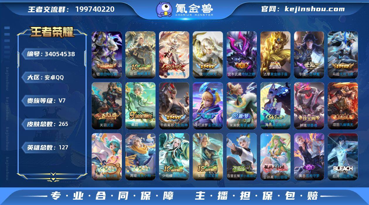 安卓手Q335区265皮1典藏11传说0无双 营地ID1853171811(可二次)V7非凡王者 【荣耀典藏】:银白咏叹调【优质限定皮肤】:武圣,无双飞将【传说皮肤】:久胜战神,神树通天,地狱之眼,愿照·九州拓,黄金狮子座,鸣野蒿,武圣,妄想实况,无双飞将,炽阳神光,一念神魔【史诗皮肤】:青瓷雀吟,猫狗日记,罗小黑战记,龙骑士,修罗,锁墨魂,星界战将,无心,线条小狗,乘风破浪,九幽镇关,天才门将,千年之狐,摇滚巨星,巫礼祀神,地狱岩魂,万灵启世,暗夜贵公子,原初追逐者,涂山容容,百相守梦,石田雨龙,天秀·启明,鸭鸭历险记,龙之律动,乱世虎臣,化蝶舞,曙光守护者,茶境仙,万物之道,特工魅影,冰冠公主,月团寄思,圣诞恋歌,圣诞狂欢,高山流水,水晶猎龙者,节奏热浪,蔬乡物语,暗渊魔法,舞动绿茵,荣光圣徽,功夫厨神,燃音魔法,繁星吟游,幽灵船长,绅士熊喵,纤云弄巧,岱宗,拒霜思,百解令,暗隐猎兽者,江河有灵,地狱燃心,冰雪圆舞曲,女仆咖啡,逐浪之夏,缤纷独角兽,驭风魔法,魔术师,引擎之心,电玩·爆裂旋风,奇幻香踪,皇家上将,星界游侠,德古拉伯爵,鬼剑武藏,傲雪梅枪,金属风暴,鹰眼统帅,心灵战警,星夜王子,水果甜心,李小龙,苍穹之光