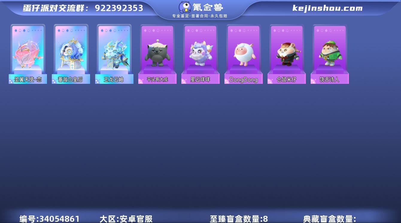 DongDong天狗刑云华清贵妇玉环天火麒麟焰诗仙太白心锁少女露丝大魔术师梨嘉玉龙云岫圣翼天使恋蔷薇白皇后 历史潮流:8.7万 段位:三阶鸡蛋 等级:53 性别:男 幻彩套装数量:8 紫色套装数量:62 幻彩套装:华清贵妇玉环、天火麒麟焰、诗仙太白、心锁少女露丝、大魔术师梨嘉、玉龙云岫、圣翼天使恋、蔷薇白皇后 紫色套装:古风小生汪伦、沉梦女孩朵朵、抽象蛋小黄、荔小懒、胡商阿伊莎、哈吾卫、魔术助手 KK、马戏乐手咻咻、风铃星语刹那、木偶匹诺曹、青芒果果、平头哥大成,青年卢修斯、饭团阿台、牛角包面面、饶舌小子,哈尼执事、齐天大圣、元气丸子、小太阳葵葵、流浪小象多多、狸猫大力。机械师维迪、松饼小红帽、饶舌诗人,企鹅兜兜、结缘仙灵林铃音、调香师薇洛、黑拳瓦格纳、玫瑰星缘芙雷、超燃魔鬼蛋、超燃蛋小黑、超燃蛋小红、超燃蛋小蓝、超燃蛋小绿、超燃蛋小粉、超燃蛋小黄、大娃、新春奶龙、暴暴龙、咸鱼蛋、雪怪瓦图鲁、美羊羊、小灰灰、刺猬绷绷、天狗刑云、雪王、星云咩咩、玫瑰骑士、彩虹水波蛋、失心熊、仓鼠米仔、貔貅福福、铃兰三月兔、蓝樱爱丽丝、虎皮卷大灰狼、仔仔熊,DongDong、圆圆子、糖心公主、淘气丸子、狗蛋阿甜 背饰:业火之翼焰、海神的赐福...